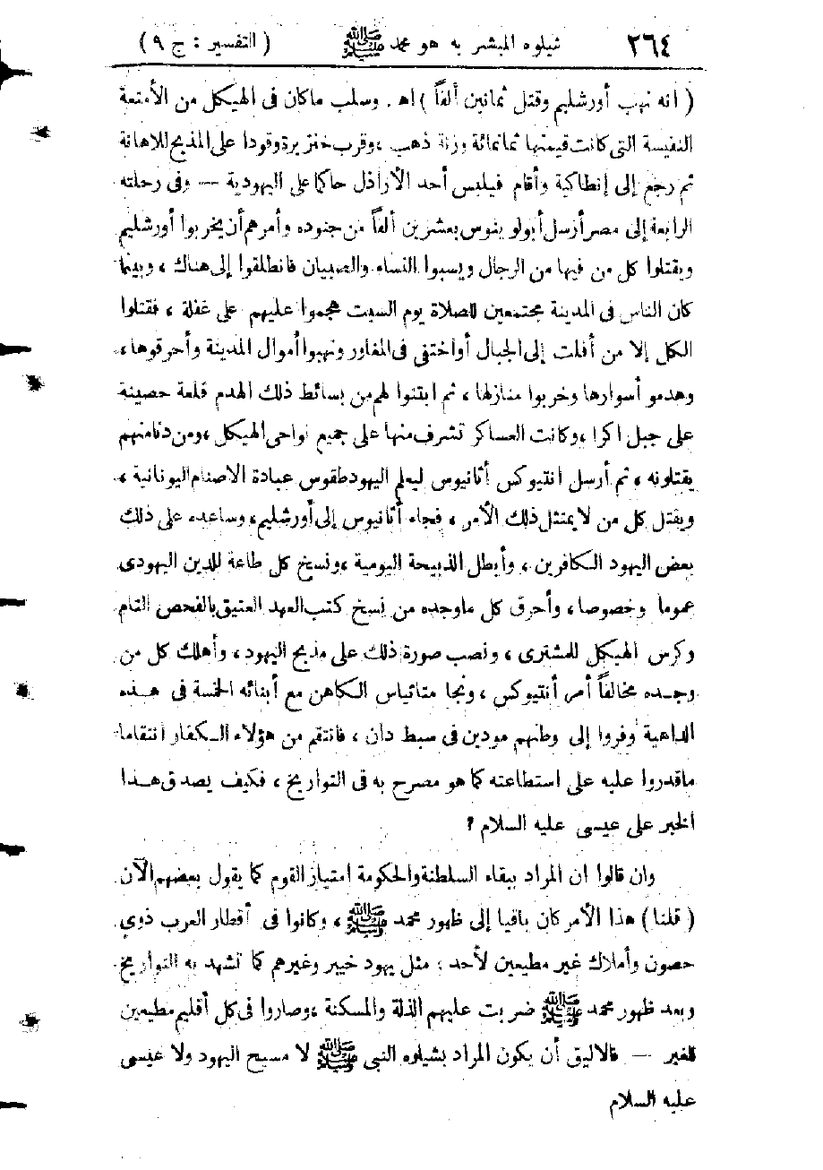 " فَإِنْ قَالَ قَائِلٌ: فَإِنَّ الرُّسُلَ قَبْلَ مُحَمَّدٍ ـ صَلَّى اللَّهُ عَلَيْهِ وَسَلَّمَ ـ كَانُوا يُرْسَلُونَ إِلَى قَوْمِهِمْ خَاصَّةً، وَأَنَّ مُحَمَّدًا ـ صَلَّى اللَّهُ عَلَيْهِ وَسَلَّمَ ـ بُعِثَ إِلَى النَّاسِ كَافَّةً؟ (قِيلَ) : فَقَدْ يُحْتَمَلُ أَنْ يَكُونَ بُعِثَ بِلِسَانِ قَوْمِهِ خَاصَّةً، وَيَكُونُ عَلَى النَّاسِ كَافَّةً أَنْ يَتَعَلَّمُوا