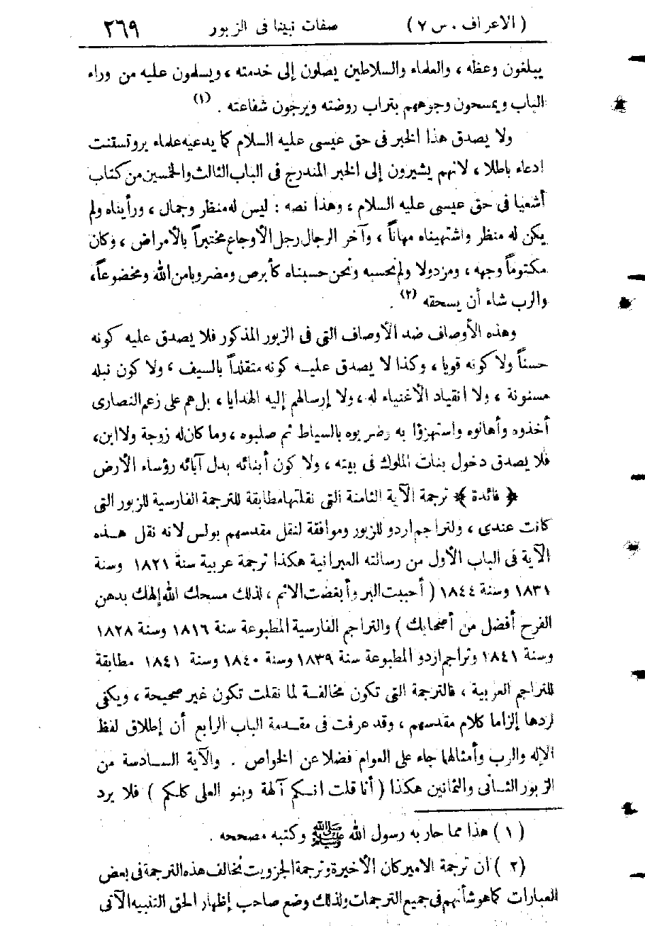 وَصَلَوَاتُ اللهِ وَتَحِيَّاتُهُ الْمُبَارَكَةُ الطَّيِّبَةُ عَلَى مُحَمَّدٍ النَّبِيِّ الْعَرَبِيِّ الْأَمِينِ، الَّذِي جَعَلَهُ سَيِّدَ وَلَدِ آدَمَ وَفَضَّلَهُ عَلَى جَمِيعِ النَّبِيِّينَ وَالْمُرْسَلِينَ، بِإِكْمَالِ دِينِهِ بِلِسَانِهِ، وَعَلَى لِسَانِهِ وَإِرْسَالِهِ لِجَمِيعِ الْعَالَمِينَ، وَجَعَلَ هِدَايَةَ رِسَالَتِهِ بَاقِيَةً إِلَى يَوْمِ الدِّينِ، بِقَوْلِهِ عَمَّتْ رَحْمَتُهُ: وَمَا أَرْسَلْنَاكَ إِلَّا رَحْمَةً لِلْعَالَمِينَ (21: 107) وَقَوْلِهِ تَبَارَكَ اسْمُهُ: تَبَارَكَ الَّذِي نَزَّلَ الْفُرْقَانَ عَلَى عَبْدِهِ لِيَكُونَ لِلْعَالَمِينَ نَذِيرًا (25: 1) وَقَوْلِهِ تَعَالَى جَدُّهُ: وَمَا أَرْسَلْنَاكَ إِلَّا كَافَّةً لِلنَّاسِ بَشِيرًا وَنَذِيرًا وَلَكِنَّ أَكْثَرَ النَّاسِ لَا يَعْلَمُونَ (34: 28) وَقَوْلِهِ جَلَّ جَلَالُهُ: مَا كَانَ مُحَمَّدٌ أَبَا أَحَدٍ مِنْ رِجَالِكُمْ وَلَكِنْ رَسُولَ اللهِ وَخَاتَمَ النَّبِيِّينَ وَكَانَ اللهُ بِكُلِّ شَيْءٍ عَلِيمًا (33: 40) وَقَوْلِهِ عَمَّ نَوَالُهُ فِيمَا أَنْزَلَهُ عَلَيْهِ فِي حَجَّةِ الْوَدَاعِ يَوْمَ الْحَجِّ الْأَكْبَرِ: الْيَوْمُ أَكْمَلْتُ لَكُمْ دِينَكُمْ وَأَتْمَمْتُ عَلَيْكُمْ نِعْمَتِي وَرَضِيتُ لَكُمُ الْإِسْلَامَ دِينًا (5: 3) .