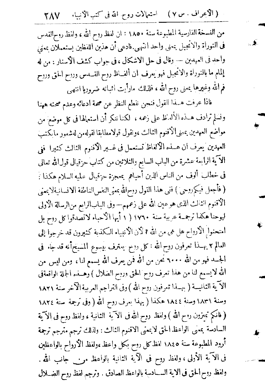 (ثَالِثًا) إِنْ فَرَضْنَا أَنَّ هَذَا مُرَادٌ فِي بَعْضِ الْقُرْآنِ كَقِصَّةِ مُوسَى الَّتِي فِي سُورَةِ الشُّعَرَاءِ أَوْ مُطْلَقًا دُونَ الْفَاتِحَةِ، وَمِثْلِ قِصَّةِ بَدْرٍ وَأُحُدٍ، وَأَنَّ مَنْ قَرَأَ قِصَّةَ مُوسَى فِي سُورَةِ الشُّعَرَاءِ يَصِحُّ أَنْ يَقُولَ: قَرَأْتُ التَّوْرَاةَ مُتَرْجَمَةً بِالْعَرَبِيَّةِ، فَإِنَّ هَذَا - عَلَى كَوْنِهِ - لَيْسَ بِصَحِيحٍ أَيْضًا عَلَى حَقِيقَتِهِ - لَا يَدُلُّ عَلَى جَوَازِ تَرْجَمَةِ الْقُرْآنِ كُلِّهِ كَمَا أَنَّ الَّذِي يَقْرَأُ الْقِصَّةَ فِي سِفْرِ الْخُرُوجِ مِنَ التَّوْرَاةِ لَا يَصِحُّ أَنْ يَقُولَ: قَرَأْتُ الْقُرْآنَ الَّذِي هُوَ مَوْضُوعُ الْخِلَافِ. وَإِنَّمَا قُصَارَى مَا يَدُلُّ عَلَيْهِ أَنْ تَجُوزَ قِرَاءَةُ عِبَارَةِ التَّوْرَاةِ الْمُوَافِقَةِ لِلْقُرْآنِ فِي الصَّلَاةِ، وَأَنْ يُقَاسَ عَلَيْهَا جَوَازُ تَرْجَمَتِهَا بِالْفَارِسِيَّةِ مَثَلًا، وَلَمْ يَقُلْ بِالْأَصْلِ أَبُو حَنِيفَةَ وَلَا غَيْرُهُ مِنْ عُلَمَاءِ الْمُسْلِمِينَ حَتَّى يَصِحَّ قِيَاسُهُمْ عَلَيْهِ. وَهَاهُنَا مَجَالٌ وَاسِعٌ لِلتَّجْهِيلِ وَالسُّخْرِيَةِ بِمَنٍّ يَتَهَوَّكُونَ مِثْلَ هَذَا التَّهَوُّكِ الَّذِي نَحْنُ بِصَدَدِهِ، وَيَنْشُرُونَهُ عَلَى النَّاسِ فِي مَسْأَلَةٍ عَظِيمَةٍ كَهَذِهِ نَتْرُكُهُ عَفْوًا عَنْهُمْ.