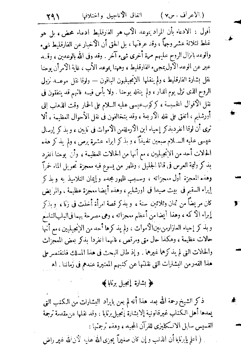 (الشُّبْهَةُ الرَّابِعَةُ) مَسْأَلَةُ تَبْلِيغِ الدَّعْوَةِ إِلَى الْإِسْلَامِ. وَقَدْ بَيَّنَّا بُطْلَانِهَا مِنْ قَبْلُ، وَنَزِيدُهَا هُنَا بَيَانًا فَنَقُولُ: لَئِنْ كَانَ اطِّلَاعُ بَعْضِ الْأَفْرَادِ مِنْ أَعَاجِمِ الشَّرْقِ وَالْغَرْبِ عَلَى تَرْجَمَةِ الْقُرْآنِ سَبَبًا لِإِسْلَامِهِمْ، فَعِلَّتُهُ أَنَّهُمْ عَرَفُوا مِنْهَا أُصُولَ الْإِسْلَامِ وَمَقَاصِدَهُ كُلَّهَا أَوْ بَعْضَهَا، وَذَلِكَ كَافٍ لِتَفْضِيلِهِ عَلَى غَيْرِهِ مِنَ الْأَدْيَانِ كُلِّهَا، وَلَمْ يَكُنْ سَبَبُهُ تَرْجَمَتَهُ كَتَأْثِيرِ أَصْلِهِ الْمُعْجِزِ لِلْبَشَرِ فِي إِقْنَاعِ الْعُقُولِ، وَهِدَايَةِ الْقُلُوبِ الَّذِي كَانَ سَبَبَ اهْتِدَاءِ الْعَرَبِ، وَقَلْبِ طِبَاعِهِمْ، وَجَمْعِ كَلِمَتِهِمْ، وَارْتِفَاعِ رَايَتِهِمْ، وَخُضُوعِ الْأُمَمِ وَالشُّعُوبِ لَهُمْ. وَلَوْ بَلَغَتْ هَذِهِ الْأُصُولُ وَالْمَقَاصِدُ لِلْأَعَاجِمِ بِلُغَاتِهِمْ بِأُسْلُوبٍ آخَرَ بِأَنْ يُذْكَرَ كُلُّ أَصْلٍ فِي فَصْلٍ خَاصٍّ مَعَ الشَّوَاهِدِ عَلَيْهِ مِنَ الْقُرْآنِ وَالسُّنَّةِ، بِبَيَانِ مَعَانِي نُصُوصِهِمَا بِالتَّفْسِيرِ، وَإِقَامَةِ الْأَدِلَّةِ عَلَيْهِ مِنَ النَّقْلِ وَالْعَقْلِ - لَكَانَ يَكُونُ ذَلِكَ أَقْرَبَ إِلَى الْإِقْنَاعِ، وَأَشَدَّ تَأْثِيرًا فِي هِدَايَةِ الْمُسْتَعِدِّ لِلْإِسْلَامِ فَإِنَّ هَذِهِ هِيَ الطَّرِيقَةُ الْمُثْلَى لِلدَّعْوَةِ، وَهِيَ الَّتِي جَرَى عَلَيْهَا مُسْلِمُو خَيْرِ الْقُرُونِ، وَشَهِدَ لَهُمْ بِذَلِكَ أَصْدَقُ الشُّهُودِ، وَأَبْعَدُهَا عَنِ الْجَرْحِ وَالطَّعْنِ - وَهِيَ
