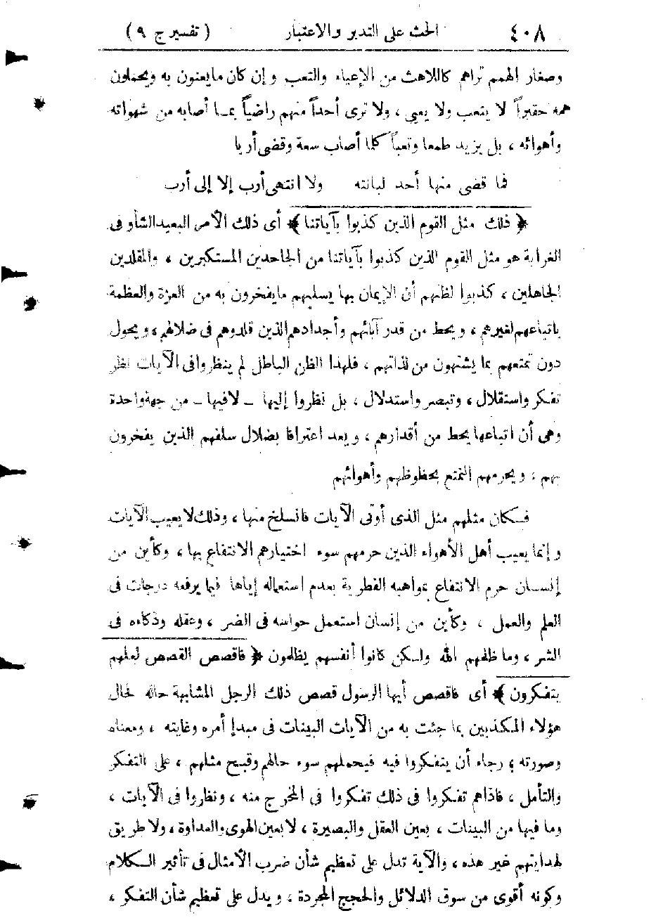 أَنَّ لَهَا أَشْرَاطًا تَقَعُ بِالتَّدْرِيجِ، فَهُمْ آمِنُونَ مِنْ مَجِيئِهَا بَغْتَةً فِي كُلِّ زَمَنٍ، وَإِنَّمَا يَنْتَظِرُونَ قَبْلَهَا ظُهُورَ الدَّجَّالِ وَالْمَهْدِيِّ وَالْمَسِيحِ عَلَيْهِ السَّلَامُ وَيَأْجُوجَ وَمَأْجُوجَ، وَهَذَا الِاعْتِقَادُ لَا يُفِيدُ النَّاسَ مَوْعِظَةً وَلَا خَشْيَةً، وَلَا اسْتِعْدَادًا لِذَلِكَ الْيَوْمِ أَوْ لِتِلْكَ السَّاعَةِ، فَمَا فَائِدَةُ الْعِلْمِ بِهِ إِذًا؟ وَهَلْ مِنَ الْحِكْمَةِ أَنْ تَكُونَ فَائِدَتُهَا مَحْصُورَةٌ فِي وُقُوعِ الرُّعْبِ فِي قُلُوبِ الَّذِينَ يُشَاهِدُونَ هَذِهِ الْآيَاتِ الْكُبْرَى، وَلَا سِيَّمَا آخِرُ آيَةٍ مِنْهَا؟ وَكَيْفَ يَتَّفِقُ هَذَا وَمَا وَرَدَ مِنْ كَوْنِ كُلِّ رَسُولٍ كَانَ يُخَوِّفُ قَوْمَهُ وَيُنْذِرُهُمُ السَّاعَةَ وَالدَّجَّالَ قَبْلَهَا؟ وَكَيْفَ وَقَعَ هَذَا مِنْهُمْ وَلَمْ يُصَدِّقْهُ الْوَاقِعُ وَمِثْلُهُ لَا يَكُونُ بِمَحْضِ الرَّأْيِ؟ وَهَلْ كَانَ نَبِيُّنَا - صَلَّى اللَّهُ عَلَيْهِ وَسَلَّمَ - يُرِيدُ بِالْإِخْبَارِ بِهَا تَأْمِينَ النَّاسِ مِنْ قِيَامِ السَّاعَةِ مُدَّةَ قُرُونٍ كَثِيرَةٍ إِلَى أَنْ تَظْهَرَ هَذِهِ الْأَشْرَاطُ؟ أَمْ كَانَ يَتَوَقَّعُ ظُهُورَهَا بَعْدَهُ فِي قَرْنِهِ أَوْ فِيمَا يَقْرُبُ مِنْهُ كَغَيْرِهِ مِنَ الرُّسُلِ بِدَلِيلِ مَا وَرَدَ مِنْ تَجْوِيزِهِ ظُهُورَ الدَّجَّالِ فِي زَمَنِهِ، وَتَصْدِيقِهِ مَا حَكَاهُ تَمِيمٌ الدَّارِيُّ مِنْ خَبَرِ الْجَسَّاسَةِ، وَكَوْنِ الدَّجَّالِ مَحْبُوسًا فِي جَزِيرَةٍ؟ .