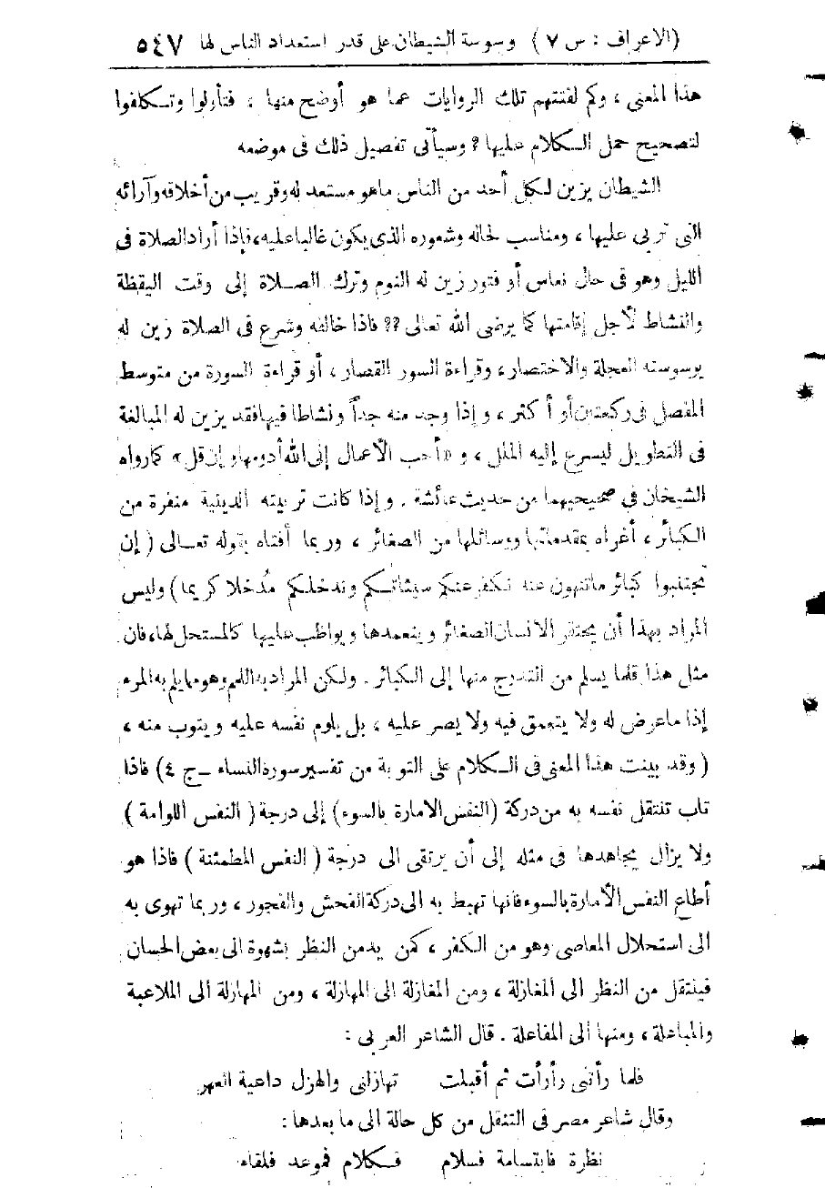 السِّيَاقِ، وَالثَّانِي أَخَصُّ وَيُؤَيِّدُهُ فِي حَدِّ ذَاتِهِ قَوْلُهُ تَعَالَى: أَلَا إِنَّ أَوْلِيَاءَ اللهِ لَا خَوْفٌ عَلَيْهِمْ وَلَا هُمْ يَحْزَنُونَ الَّذِينَ آمَنُوا وَكَانُوا يَتَّقُونَ (10: 62، 63) وَيَجُوزُ الْجَمْعُ بَيْنَهُمَا وَلَكِنَّ أَكْثَرَهُمْ لَا يَعْلَمُونَ أَنَّهُ لَا حَقَّ لَهُمْ فِي الْوِلَايَةِ عَلَى هَذَا الْبَيْتِ وَلَا سِيَّمَا بَعْدَ ظُهُورِ الْإِسْلَامِ، وَوُجُودِ أَوْلِيَاءِ اللهِ الْمُوَحِّدِينَ الصَّالِحِينَ، وَكَانُوا يَدَّعُونَ هَذَا الْحَقَّ بِنَسَبِهِمُ الْإِبْرَاهِيمِيِّ، وَقَدْ أَبْطَلَهُ الظُّلْمُ، وَبِقُوَّتِهِمْ فِي قَوْمِهِمْ، وَإِنْ كَانَتْ إِلَى ضَعْفٍ أَوْ لَا يَعْلَمُونَ أَنَّهُمْ لَيْسُوا أَوْلِيَاءَ اللهِ - عَزَّ وَجَلَّ -، وَلَا أَنَّ أَوْلِيَاءَهُ لَيْسُوا إِلَّا الْمُتَّقِينَ، فَهُمُ الْآمِنُونَ مِنْ عَذَابِهِ بِمُقْتَضَى عَدْلِهِ فِي خَلْقِهِ، وَالْحَقِيقُونَ بِالْوِلَايَةِ عَلَى بَيْتِهِ، عَلَى مَا أَعَدَّ لَهُمْ مِنَ الثَّوَابِ وَالنَّعِيمِ بِفَضْلِهِ، كَمَا صَرَّحَتْ بِهِ آيَاتُهُ فِي كِتَابِهِ، وَقَدْ أَسْنَدَ هَذَا الْجَهْلَ إِلَى أَكْثَرِهِمْ إِذْ كَانَ فِيهِمْ مَنْ لَا يَجْهَلُ سُوءَ حَالِهِمْ فِي جَاهِلِيَّتِهِمْ وَضَلَالِهِمْ فِي شِرْكِهِمْ، وَكَوْنِهِ لَا يُرْضِي اللهَ تَعَالَى، فَإِنِ امْتَنَعَ رُؤَسَاؤُهُمْ مِنَ الْإِسْلَامِ كِبْرًا وَعِنَادًا، فَقَدْ كَانَ فِيهِمْ مَنْ يَكْتُمُ إِيمَانَهُ خَوْفًا مِنَ الْفِتْنَةِ، وَيَتَرَبَّصُ الْفُرْصَةَ لِإِظْهَارِهِ بِالِاسْتِعْدَادِ لِلْهِجْرَةِ، وَمِنْهُمُ الْمُسْتَعِدُّونَ لَهُ بِسَلَامَةِ الْفِطْرَةِ، وَلِلتَّفَاوُتِ
