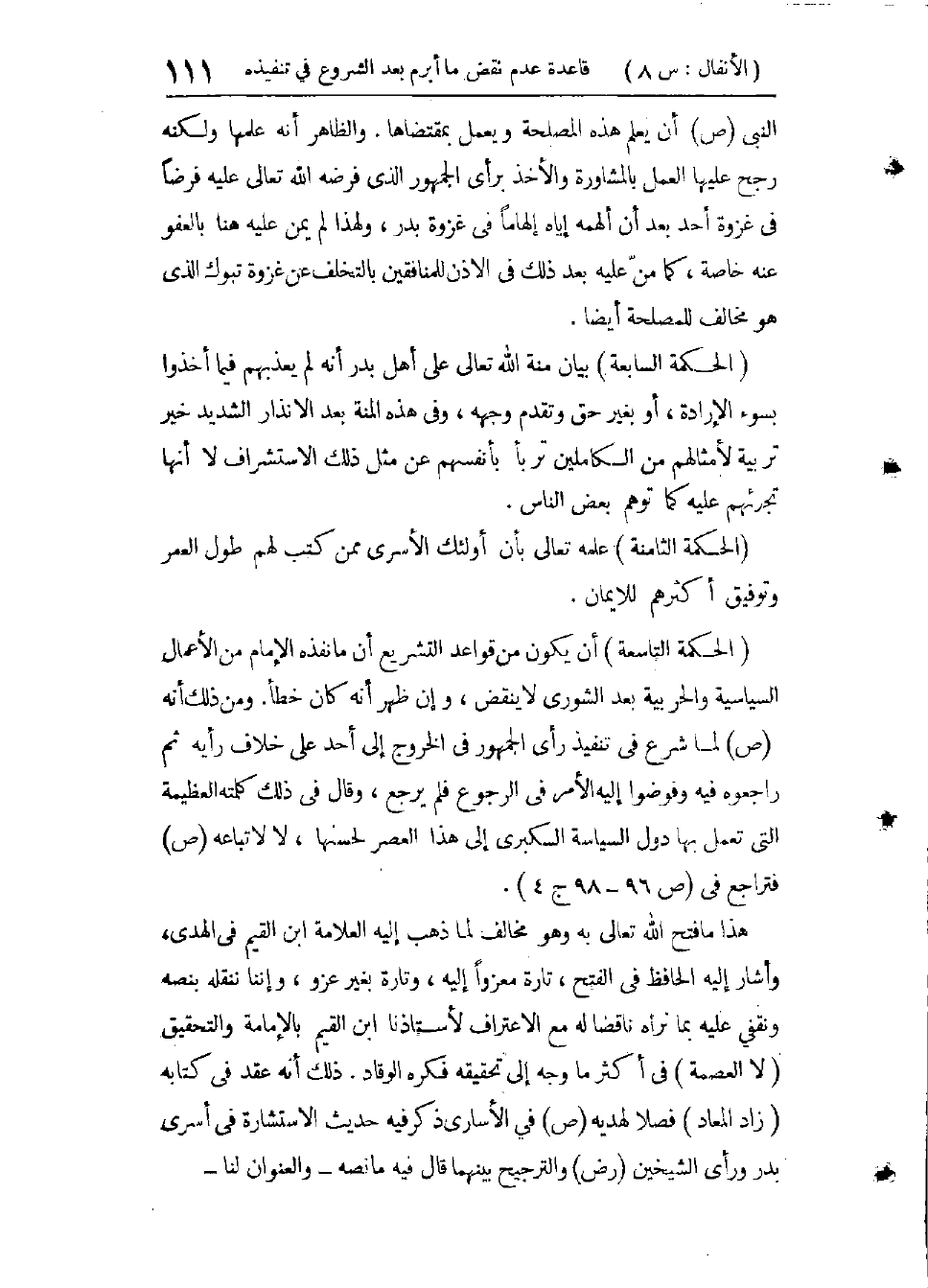 (الْأَصْلُ الثَّامِنُ) عِتَابُهُ تَعَالَى لَهُ فِي ضِمْنِ الْمُؤْمِنِينَ لِعَمَلِهِ بِرَأْيِهِمْ فِي أَخْذِ الْفِدَاءِ مِنْ أُسَارَى بَدْرٍ فِي الْآيَتَيْنِ 68 و69 فَيُرَاجَعُ تَفْسِيرُهُمَا، وَمَا فِيهِ مِنَ التَّحْقِيقِ وَمَا فِيهِمَا مِنَ الْحِكَمِ وَالْأَحْكَامِ فِي هَذَا الْجُزْءِ.