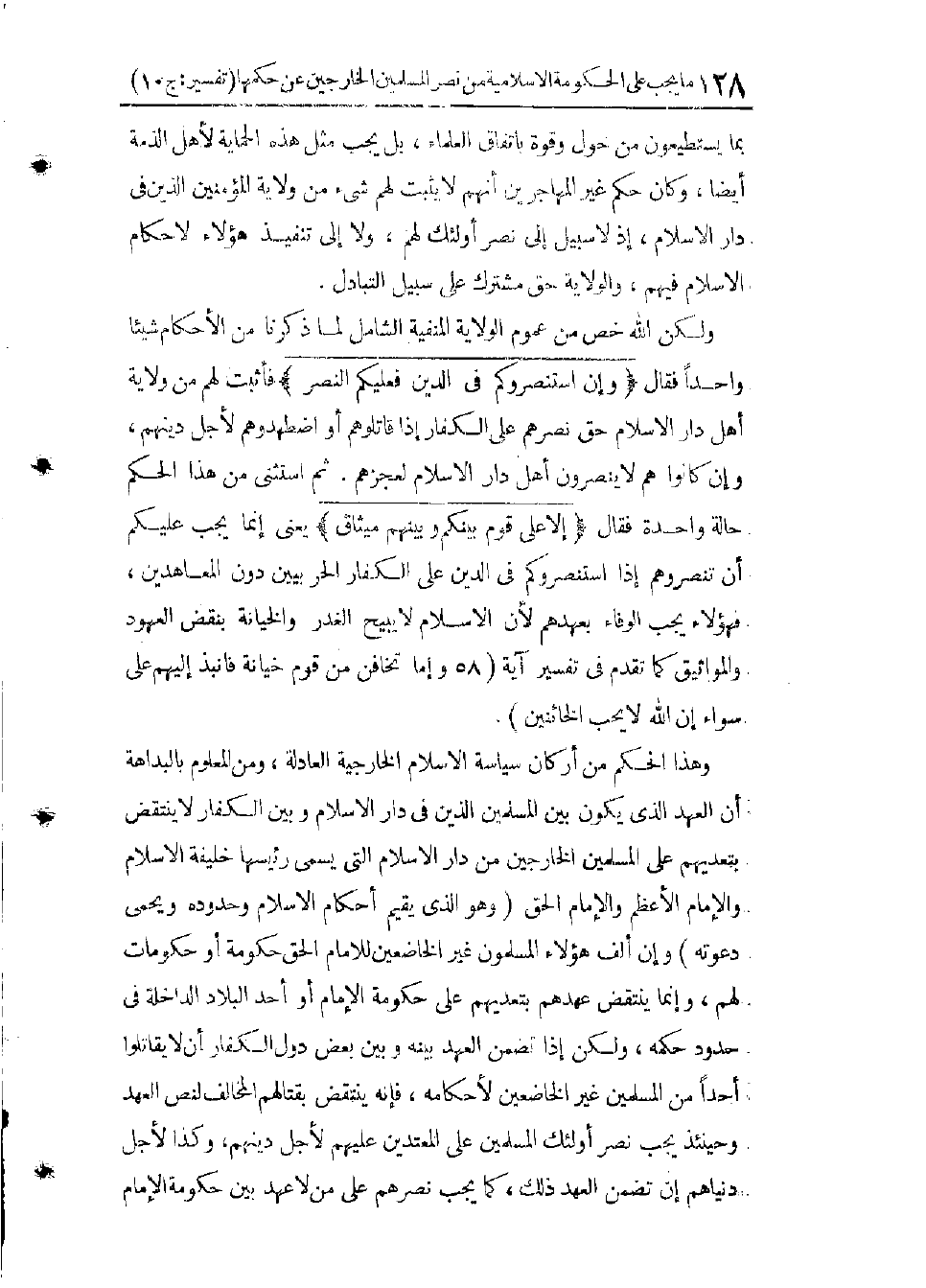 السُّورَةِ فِي مَقَامِ تَوْطِينِ النَّفْسِ عَلَى إِيثَارِ السِّلْمِ عَلَى الْحَرْبِ، وَثُبُوتِ الصُّلْحِ مِنَ الْأَعْدَاءِ مَعَ احْتِمَالِ إِرَادَتِهِمْ بِهِ الْخِدَاعَ (آيَةُ 61 و62) فَانْظُرْ تَفْسِيرَهَا فِي الْجُزْءِ الْعَاشِرِ، وَقَالَ قَبْلَهَا فِي الرَّدِّ عَلَى الْمُنَافِقِينَ وَمَرْضَى الْقُلُوبِ: إِذْ يَقُولُ الْمُنَافِقُونَ وَالَّذِينَ فِي قُلُوبِهِمْ مَرَضٌ غَرَّ هَؤُلَاءِ دِينُهُمْ (49) فَرَاجِعْ تَفْسِيرَهَا فِي الْجُزْءِ الْعَاشِرِ. وَقَدْ وَصَفَ اللهُ الْمُؤْمِنِينَ بِالتَّوَكُّلِ فِيهَا