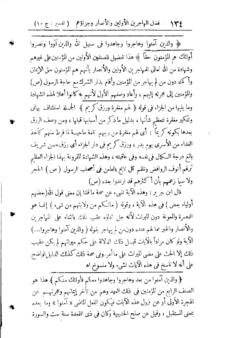 التَّعْذِيبِ، إِلَّا بِتَأْمِينِ حِلْفٍ أَوْ قَرِيبٍ. فَهَاجَرَ مَنْ هَاجَرَ مِنْهُمُ الْمَرَّةَ بَعْدَ الْمَرَّةِ، ثُمَّ اشْتَدَّ إِيذَاؤُهُمْ لِلرَّسُولِ ـ صَلَّى اللَّهُ عَلَيْهِ وَسَلَّمَ ـ حَتَّى ائْتَمَرُوا بِحَبْسِهِ الدَّائِمِ أَوْ نَفْيِهِ أَوْ قَتْلِهِ عَلَنًا فِي دَارِ النَّدْوَةِ، وَرَجَّحُوا فِي آخِرِ الْأَمْرِ قَتْلَهُ، فَأَمَرَهُ اللهُ تَعَالَى بِالْهِجْرَةِ، كَمَا تَقَدَّمَ فِي تَفْسِيرِ وَإِذْ يَمْكُرُ بِكَ الَّذِينَ كَفَرُوا (8: 30) [ص40 وَمَا بَعْدَهَا ج 9 ط الْهَيْئَةِ] فَهَاجَرَ ـ صَلَّى اللَّهُ عَلَيْهِ وَسَلَّمَ ـ وَصَارَ يَتْبَعُهُ مَنْ قَدَرَ عَلَى الْهِجْرَةِ مِنْ أَصْحَابِهِ إِلَى حَيْثُ وَجَدُوا مِنْ مُهَاجَرِهِمْ بِالْمَدِينَةِ الْمُنَوَّرَةِ أَنْصَارًا لِلَّهِ وَلِرَسُولِهِ يُحِبُّونَ مَنْ هَاجَرَ إِلَيْهِمْ، وَيُؤْثِرُونَهُمْ عَلَى أَنْفُسِهِمْ، وَكَانَتِ الْحَالُ بَيْنَهُمْ وَبَيْنَ مُشْرِكِي مَكَّةَ وَغَيْرِهِمْ مِنَ الْعَرَبِ حَالَ حَرْبٍ بِالطَّبْعِ، وَمُقْتَضَى الْعُرْفِ الْعَامِّ فِي ذَلِكَ الْعَصْرِ، وَعَاهَدَ ـ صَلَّى اللَّهُ عَلَيْهِ وَسَلَّمَ ـ أَهْلَ الْكِتَابِ مِنْ يَهُودِ الْمَدِينَةِ وَمَا حَوْلَهَا عَلَى السَّلْمِ وَالتَّعَاوُنِ فَخَانُوا وَغَدَرُوا، وَنَقَضُوا عُهُودَهُمْ لَهُ مَا كَانُوا يُوَالُونَ الْمُشْرِكِينَ وَيُظَاهِرُونَهُمْ كُلَّمَا حَارَبُوهُ، كَمَا تَقَدَّمَ بَيَانُ ذَلِكَ كُلِّهِ فِي تَفْسِيرِ سُورَةِ الْأَنْفَالِ مِنْ هَذَا الْجُزْءِ.