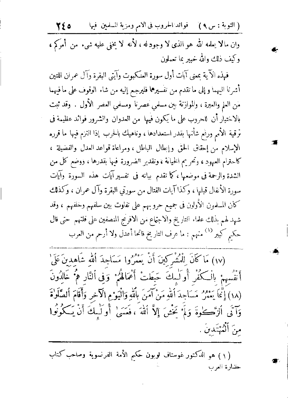 وَقَدْ ذَكَرْنَا الْأَحَادِيثَ الصَّحِيحَةَ فِي أَمْرِ النَّبِيِّ ـ صَلَّى اللَّهُ عَلَيْهِ وَسَلَّمَ ـ بِإِخْرَاجِ الْمُشْرِكِينَ وَأَهْلِ الْكِتَابِ مِنْ جَزِيرَةِ الْعَرَبِ، وَأَلَّا يَبْقَى فِيهَا دِينَانِ، مَعَ بَيَانِ حِكْمَةِ ذَلِكَ فِي خَاتِمَةِ الْكَلَامِ عَلَى مُعَامَلَةِ النَّبِيِّ ـ صَلَّى اللَّهُ عَلَيْهِ وَسَلَّمَ ـ لِلْيَهُودِ فِي السِّلْمِ وَالْحَرْبِ وَإِجْلَائِهِمْ مِنْ جِوَارِهِ فِي الْمَدِينَةِ، وَإِجْلَاءِ عُمَرَ لِيَهُودِ خَيْبَرَ وَغَيْرِهِمْ وَنَصَارَى نَجْرَانَ عَمَلًا بِوَصِيَّتِهِ فِي مَرَضِ مَوْتِهِ ـ صَلَّى اللَّهُ عَلَيْهِ وَسَلَّمَ ـ[ص51 ج 10 ط الْهَيْئَةِ] .
