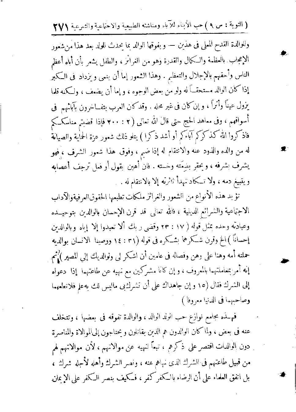 الْأُخْرَى عَلَى الْوَجْهِ الْمَعْرُوفِ الْمُشَاهَدِ فِي جَمِيعِ الْمُسْتَعْمَرَاتِ الْأُورُبِّيَّةِ، وَإِنَّمَا تَجِبُ الْمُسَاوَاةُ بَيْنَهُمْ وَبَيْنَ الْمُسْلِمِينَ فِي الْعَدْلِ وَالْحُقُوقِ وَالضَّرَائِبِ، مَعَ أَنَّ الْمَفْرُوضَ عَلَى الْمُسْلِمِينَ فِي أَمْوَالِهِمْ أَكْثَرُ، كَأَنْوَاعِ الزَّكَاةِ الْمَفْرُوضَةِ، وَالصَّدَقَاتِ الْمَنْدُوبَةِ، حَتَّى قَالَ الْفُقَهَاءُ: إِنَّهُ يَجِبُ عَلَى الْمُسْلِمِ نَفَقَةُ الْمُضْطَرِّ مِنْ ذِمِّيٍّ وَمُعَاهَدٍ، إِذَا لَمْ يُوجَدُ مَنْ يَقُومُ لَهُ بِهَا مِنْ قَرِيبٍ وَغَيْرِهِ. وَإِنَّمَا زَادَ بَعْضُهُمْ مَا يُؤْخَذُ مِنَ الْمَكْسِ مِنَ الذِّمِّيِّينَ عَلَى مَا يُؤْخَذُ مِنَ الْمُسْلِمِينَ بِرُبُعِ الْعُشْرِ فِي مُقَابَلَةِ الزَّكَاةِ. وَمَعَ هَذَا