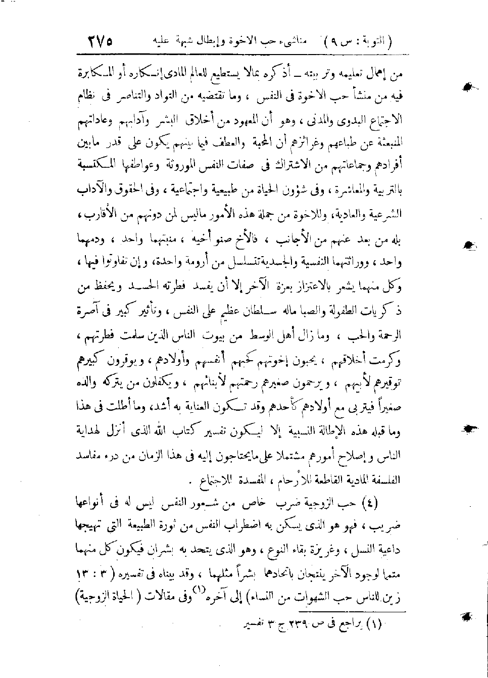 وَإِقَامَةِ تِلْكَ الشَّرِيعَةِ الْعَادِلَةِ، وَإِحْيَاءِ تِلْكَ الْهِدَايَةِ الشَّامِلَةِ لِتُضِيءَ لِلْبَشَرِ الطَّرِيقَ لِلْخُرُوجِ مِنْ ظُلُمَاتِ هَذَا الِاضْطِرَابِ النَّفْسِيِّ، وَالْفَوْضَى الِاجْتِمَاعِيَّةِ، وَالسَّرَفِ الشَّهْوَانِيِّ، الَّتِي أَحْدَثَتْهَا الْأَفْكَارُ الْمَادِّيَّةُ وَنَزَعَاتُ الْإِلْحَادِ وَالْحُكْمُ الْبُلْشُفِيُّ الَّذِي هُوَ شَرُّ نَتَائِجِهَا، فَقَدْ عَجَزَتْ بَقَايَا هِدَايَةِ النَّصْرَانِيَّةِ عَنْ صَدِّ غِشْيَانِ هَذِهِ الظُّلُمَاتِ لِأَعْظَمِ مَمَالِكِهَا، بَعْدَ أَنْ ثَارَتْ سُحُبُهَا مِنْ أُفُقِ مَدَارِسِهَا، فَكَيْفَ تَقْوَى عَلَى تَقْشِيعِ هَذِهِ السُّحُبِ بَعْدَ تَكَاثُفِهَا، وَقَدْ كَانَتْ هِيَ نَفْسُهَا مِنْ أَسْبَابِ حُدُوثِهَا؟ .