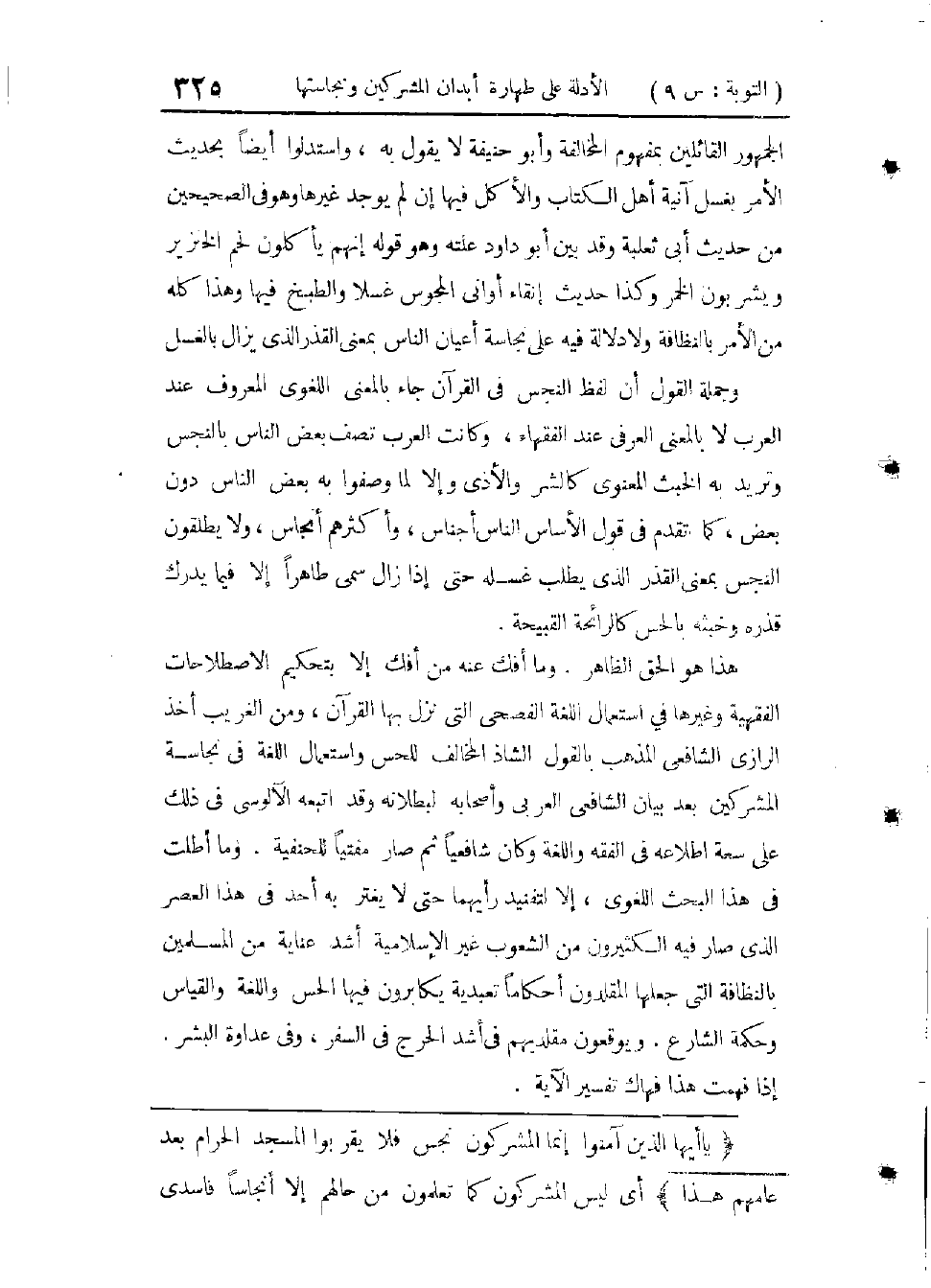 فَلْيَتَّقِ اللهَ تَعَالَى مَنْ يَظُنُّونَ بِجَهْلِهِمْ أَنَّ جُرْأَتَهُمْ عَلَى تَحْرِيمِ مَا لَمْ يُحَرِّمْهُ اللهُ تَعَالَى عَلَى عِبَادِهِ مِنْ كَمَالِ الدِّينِ وَقُوَّةِ الْيَقِينِ، سَوَاءً حَرَّمُوا مَا حَرَّمُوا بِآرَائِهِمْ وَأَهْوَائِهِمْ، أَوْ بِقِيَاسٍ فِي غَيْرِ مَحَلِّهِ، مَعَ كَوْنِهِمْ مِنْ غَيْرِ أَهْلِهِ، أَوْ بِالنَّقْلِ عَنْ بَعْضِ مُؤَلِّفِي الْكُتُبِ الْمَيِّتِينَ وَإِنْ كَبُرَتْ أَلْقَابُهُمْ، وَكَذَا إِنْ كَانَ أَخْذًا مِنْ نَصٍّ شَرْعِيٍّ لَا يَدُلُّ عَلَيْهِ دِلَالَةً قَطْعِيَّةً، عَلَى مَا تَقَدَّمَ بَيَانُهُ فِي الْخَمْرِ وَالْمَيْسِرِ، وَلْيَتَقِ اللهَ مَنْ يَضَعُونَ لِلنَّاسِ الْأَوْرَادَ وَالْأَحْزَابَ الْكَثِيرَةَ، وَيَجْعَلُونَهَا لَهُمْ كَشَعَائِرِ الدِّينِ الْمَنْصُوْصَةِ بِحَمْلِهِمْ عَلَيْهَا فِي الِاجْتِمَاعَاتِ، وَاشْتِرَاكِهِمْ فِيهَا بِرَفْعِ الْأَصْوَاتِ، أَوْ تَوْقِيتِهَا لَهُمْ كَالصَّلَوَاتِ، فَكُلُّ ذَلِكَ حَقٌّ لِلَّهِ تَعَالَى وَحْدَهُ، وَلَمْ يَكُنْ عِنْدَ أَكْمَلِ الْبَشَرِ فِي الدِّينِ