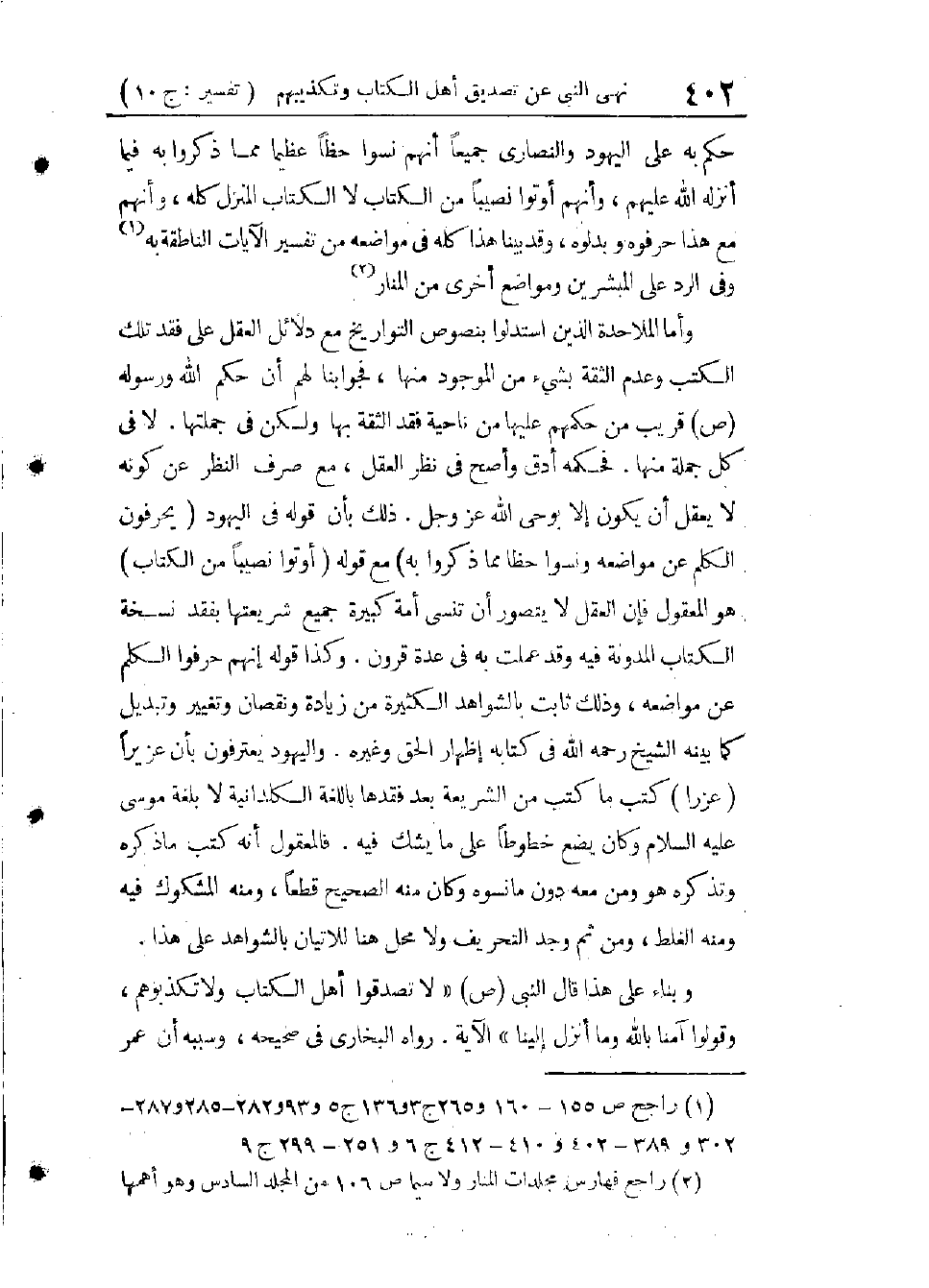 فَالتَّفَصِّي مِنْ إِسْنَادِ الذَّنْبِ إِلَى الْأَنْبِيَاءِ بِالتَّأْوِيلِ لَيُوَافِقَ الْمَذَاهِبَ وَالْقَوَاعِدَ، كَالتَّفَصِّي مِمَّا وَصَفَ اللهُ بِهِ نَفْسَهُ وَمَا أَسْنَدَهُ إِلَيْهَا مِنَ الْعُلُوِّ وَالِاسْتِوَاءِ عَلَى الْعَرْشِ أَوْ غَيْرِهِمَا مِنَ الصِّفَاتِ، وَهُوَ يَسْتَلْزِمُ جَعْلَ بَيَانِ نُظَّارِ الْمُتَكَلِّمِينَ لِحَقَائِقِ دِينِ اللهِ أَفْصَحُ وَأَبْيَنُ وَأَوْلَى بِالتَّلْقِينِ مِنْ كِتَابِ اللهِ عَزَّ وَجَلَّ الَّذِي وَصَفَهُ بِأَنَّهُ تِبْيَانٌ لِكُلِّ شَيْءٍ، وَلَوْ قِيلَ: إِنَّ لَازِمَ الْمَذْهَبِ مَذْهَبٌ مُطْلَقًا وَإِنْ لَمْ يَفْطُنْ لَهُ صَاحِبُ الْمَذْهَبِ وَيَلْتَزِمْهُ، كَمَا يَقُولُهُ الَّذِينَ يُكْفِّرُونَ كَثِيرًا مِنَ الْمُخَالِفِينَ لَهُمْ، لَجَازَ الْحُكْمُ بِكُفْرِ هَؤُلَاءِ الْمُتَأَوِّلِينَ الْمُحَرِّفِينَ، وَلَكِنَّ أَهْلَ الْحَقِّ مِنْ عُلَمَاءِ السَّلَفِ يَمْنَعُونَ مِنَ الْحُكْمِ بِالْكُفْرِ عَلَى الشَّخْصِ الْمُعَيَّنِ، فِيمَا يَتَأَوَّلُ فِيهِ مِمَّا هُوَ كُفْرٌ فِي نَفْسِهِ، وَيَعُدُّونَ مِنَ الْعُذْرِ بِالْجَهْلِ مَا لَا يَعُدُّهُ الْمُتَكَلِّمُونَ عُذْرًا.