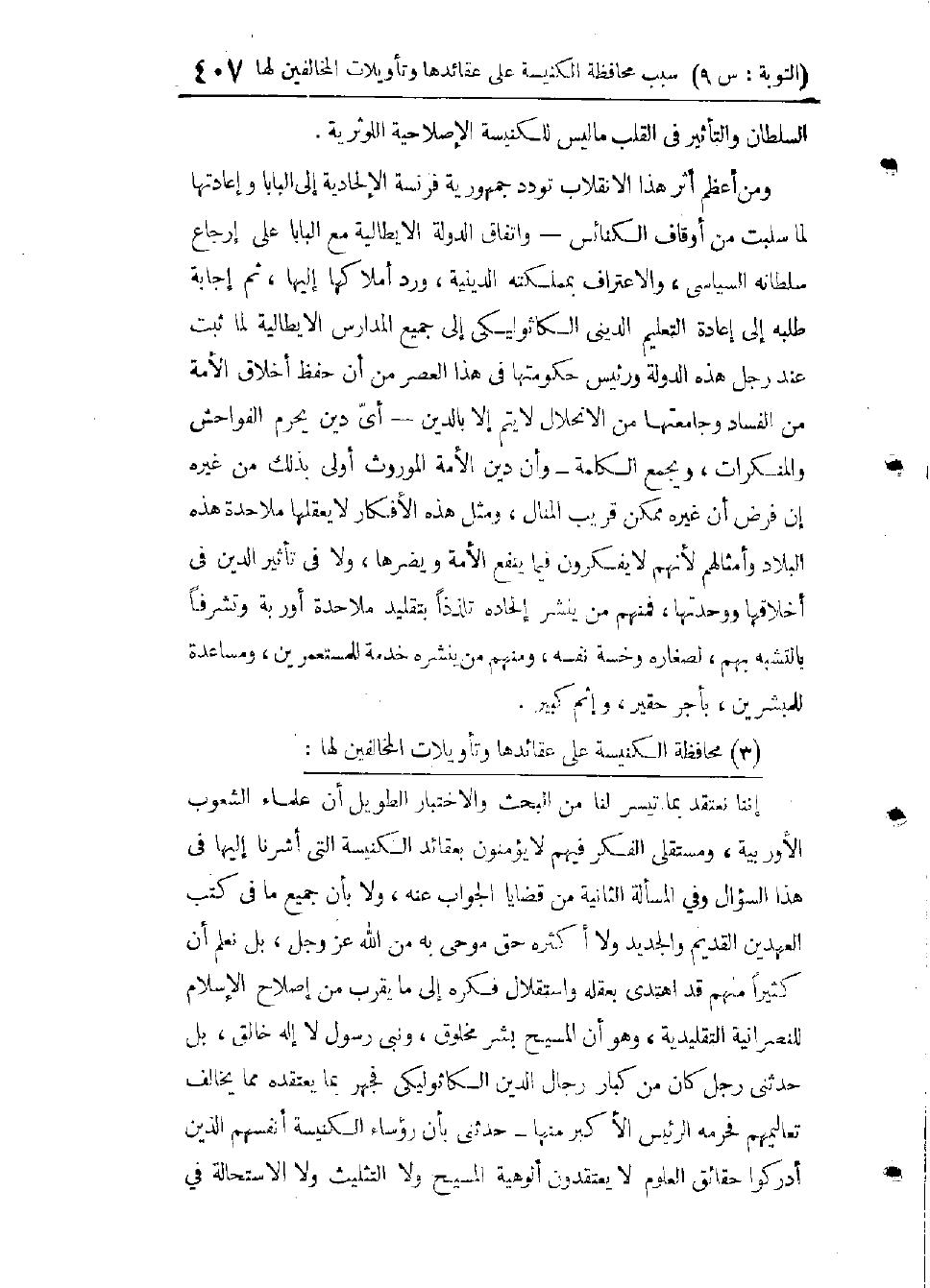 وَأَقُولُ: إِنَّ هَذَا الِاحْتِمَالَ الَّذِي ذَكَرَهُ أَبُو مُسْلِمٍ مَرْدُودٌ بِأَنَّ الْخُرُوجَ إِلَى الْجِهَادِ مَا كَانَ يَحْتَاجُ إِلَى إِذْنٍ بَعْدَ إِعْلَانِ النَّفِيرِ فَيَسْتَأْذِنُوا لَهُ. وَأَمَّا كَوْنُ خُرُوجِهِمْ مَفْسَدَةً فَهُوَ صَحِيحٌ، وَسَيَأْتِي النَّصُّ عَلَيْهِ (فِي الْآيَةِ 47) وَلَكِنَّ أُولَئِكَ الْمُسْتَأْذِنِينَ