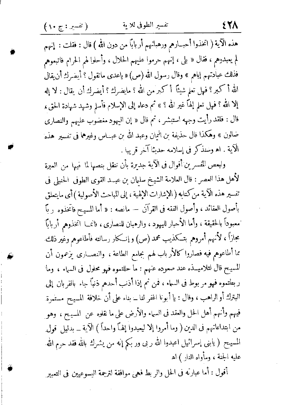 وَعَنْ أَبِي حَنِيفَةَ أَنَّ سَهْمَ هَؤُلَاءِ قَدِ انْقَطَعَ بِإِعْزَازِ اللهِ لِلْإِسْلَامِ وَهُوَ قَوْلٌ لِلشَّافِعِيِّ. وَاحْتَجُّوا بِمَا رُوِيَ أَنَّ مُشْرِكًا جَاءَ يَلْتَمِسُ مِنْ عُمَرَ مَالًا فَلَمْ يُعْطِهِ وَقَالَ: فَمَنْ شَاءَ فَلْيُؤْمِنْ وَمَنْ شَاءَ فَلْيَكْفُرْ (18: 29) وَلَا حُجَّةَ فِي هَذَا، بَلْ قَدْ يَكُونُ فِي غَيْرِ الْمَوْضُوعِ؛ إِذْ لَمْ يَقُلْ أَحَدٌ أَنَّ كُلَّ مُشْرِكٍ يُعْطَى لِتَأْلِيفِهِ. وَقَالُوا أَيْضًا: إِنَّ عُيَيْنَةَ بْنَ حِصْنٍ وَالْأَقْرَعَ بْنَ حَابِسٍ جَاءَا يَطْلُبَانِ مِنْ أَبِي بَكْرٍ ـ رَضِيَ اللهُ عَنْهُ ـ أَرْضًا، فَكَتَبَ لَهُمَا خَطًّا بِذَلِكَ، فَمَزَّقَهُ عُمَرُ ـ رَضِيَ اللهُ عَنْهُ ـ وَقَالَ: هَذَا شَيْءٌ كَانَ يُعْطِيكُمُوهُ رَسُولُ اللهِ ـ صَلَّى اللَّهُ عَلَيْهِ وَسَلَّمَ ـ تَأْلِيفًا لَكُمْ، فَأَمَّا الْيَوْمَ فَقَدْ أَعَزَّ اللهُ الْإِسْلَامَ وَأُغْنِيَ عَنْكُمْ، فَإِنْ ثَبَتُّمْ عَلَى الْإِسْلَامِ وَإِلَّا فَبَيْنَنَا وَبَيْنَكُمُ السَّيْفُ، فَرَجَعُوا إِلَى أَبِي بَكْرٍ فَقَالُوا: أَنْتَ الْخَلِيفَةُ أَمْ عُمَرُ؟ بَذَلْتَ لَنَا الْخَطَّ وَمَزَّقَهُ عُمَرُ - فَقَالَ هُوَ إِنْ شَاءَ. فَقَدْ وَافَقَهُ وَلَمْ يُنْكِرْ ذَلِكَ أَحَدٌ مِنَ الصَّحَابَةِ. وَهَذِهِ الرِّوَايَةُ لَا تَقْتَضِي سُقُوطَ هَذَا السَّهْمِ، وَإِنَّمَا ذَلِكَ اجْتِهَادٌ مِنْ عُمَرَ بِأَنَّهُ لَيْسَ مِنَ الْمَصْلَحَةِ اسْتِمْرَارُ هَذَا التَّأْلِيفِ لِهَذَيْنَ الرَّجُلَيْنِ الطَّامِعَيْنِ وَأَمْثَالِهِمَا، بَعْدَ الْأَمْنِ مِنْ ضَرَرِ ارْتِدَادِهِمَا لَوِ ارْتَدَّا؛ لِأَنَّ الْإِسْلَامَ قَدْ ثَبَتَ فِي أَقْوَامِهِمَا حَتَّى إِنَّهُ لَا يَتَرَتَّبُ عَلَى قَتْلِهِمَا - لَوِ ارْتَدَّا - أَدْنَى فِتْنَةٍ.