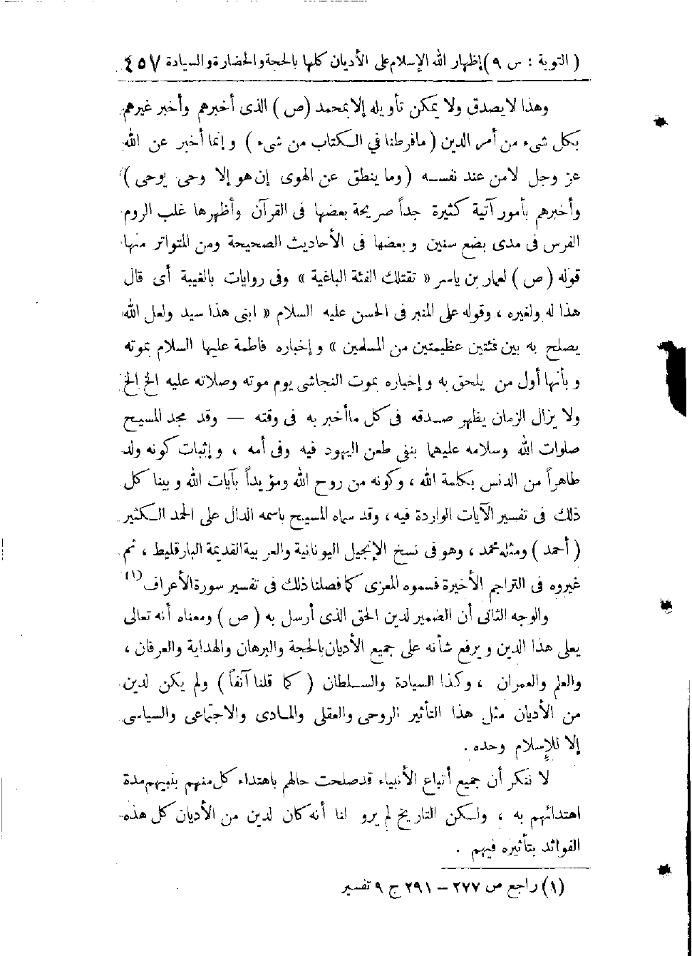 وَرَسُولَهُ فَقَصَرْتُمْ ذَلِكَ عَلَيْهِمَا، فَهَلْ ضَاقَتْ عَلَيْكُمْ جَمِيعُ مَذَاهِبِ الْكَلَامِ تَخُوضُونَ فِيهَا وَتَعْبَثُونَ دُونَهُمَا، ثُمَّ تَظُنُّونَ أَنَّ هَذَا عُذْرٌ مَقْبُولٌ، فَتُدْلُونَ بِهِ بِلَا خَوْفٍ وَلَا حَيَاءٍ؟ لَا تَعْتَذِرُوا قَدْ كَفَرْتُمْ بَعْدَ إِيمَانِكُمْ أَيْ: قَدْ كَفَرْتُمْ بِهَذَا الْخَوْضِ وَاللَّعِبِ بَعْدَ إِيمَانِكُمْ، فَاعْتِذَارُكُمْ إِقْرَارٌ بِذَنْبِكُمْ، وَإِنَّمَا الِاعْتِذَارُ الْإِدْلَاءُ بِالْعُذْرِ، وَهُوَ بِالضَّمِّ مَا يُرَادُ بِهِ مَحْوُ الذَّنْبِ، وَتَرْكُ الْمُؤَاخَذَةِ عَلَيْهِ، وَأَنْتُمْ قَدْ جِئْتُمْ بِمَا يُثْبِتُ الذَّنْبَ وَيَقْتَضِي الْعِقَابَ، أَوْ هُوَ كَمَا قِيلَ: " عُذْرٌ أَقْبَحُ مِنَ الذَّنْبِ " يُقَالُ: اعْتَذَرَ إِلَيَّ عَنْ ذَنْبِهِ فَعَذَرْتُهُ (مِنْ بَابِ ضَرَبَ) أَيْ: قَبِلْتُ عُذْرَهُ، وَرَفَعْتُ اللَّوْمَ عَنْهُ، وَهُوَ عَلَى الرَّاجِحِ الْمُخْتَارِ مَأْخُوذٌ مِنْ عَذَرَ الصَّبِيَّ يَعْذُرُهُ - أَيْ خَتَنَهُ، فَعَذْرُهُ - تَطْهِيرُهُ بِالْخِتَانِ، إِذْ هُوَ قَطْعٌ لِعَذْرَتِهِ أَيْ قُلْفَتِهِ الَّتِي تُمْسِكُ النَّجَاسَةَ.