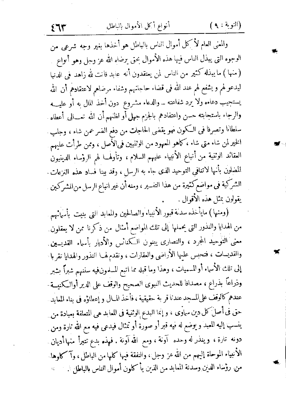 بِشَيْءٍ مِنْ إِرْشَادِ كَلَامِ اللهِ وَهَدْيِ رَسُولِهِ فِي الْفَضَائِلِ وَالْأَعْمَالِ الصَّالِحَةِ الَّتِي تَتَزَكَّى بِهَا الْأَنْفُسُ الْبَشَرِيَّةُ، وَتَكُونُ بِهَا أَهْلًا لِلسَّعَادَةِ الدُّنْيَوِيَّةِ وَالْأُخْرَوِيَّةِ، فَكُنْتُمْ أَجْدَرَ بِاللَّائِمَةِ وَالْعُقَابِ مِنْهُمْ ; لِأَنَّهُمْ أُوتُوا مِنَ الْقُوَّةِ الْمُطْغِيَةِ، وَالْأَمْوَالِ الْمُبْطِرَةِ، وَالْأَوْلَادِ الْفَاتِنَةِ، فَوْقَ مَا أُوتِيتُمْ، وَلَمْ يَرَوْا مِنْ آيَاتِ اللهِ تَعَالَى مَا رَأَيْتُمْ، وَلَا سَمِعُوا مِنْ حِكَمِ كَلَامِهِ وَشَرَائِعِهِ مَا سَمِعْتُمْ، وَلَا نَصَبَ لَهُمْ مِنَ الْمُثُلِ الْأَعْلَى لِهِدَايَةِ رُسُلِهِ مَا نَصَبَ لَكُمْ بِهَدْيِ مُحَمَّدٍ ـ صَلَّى اللَّهُ عَلَيْهِ وَسَلَّمَ ـ فَإِنَّ اللهَ نَزَّلَ عَلَيْهِ أَحْسَنَ الْحَدِيثِ، وَأَفْضَلَ الْكُتُبِ، وَأَكْمَلَ بِهِ الدِّينَ، وَجَعَلَهُ خَاتَمَ النَّبِيِّينَ، أَعَادَ ذِكْرَ اسْتِمْتَاعِ مَنْ قَبْلِهِمْ لِمَا يَقْتَضِيهِ التَّبْكِيتُ وَالتَّأْنِيبُ مِنَ الْإِطْنَابِ ; لِبَيَانِ اخْتِلَافِ الْحَالَيْنِ، فَهُوَ يَقُولُ لَهُمْ: إِنَّكُمْ فَعَلْتُمْ فِعْلَتَهُمْ حَذْوَ الْقُذَّةِ بِالْقُذَّةِ مَعَ تَوَفُّرِ الدَّوَاعِي عَلَى ضِدِّهِ وَخُضْتُمْ كَالَّذِي خَاضُوا أَيْ: وَخُضْتُمْ فِي حَمْأَةِ الْبَاطِلِ كَالْخَوْضِ الَّذِي خَاضُوهُ مِنْ كُلِّ وَجْهٍ، عَلَى مَا بَيْنَ حَالِكُمْ مِنَ الْفَرْقِ، الَّذِي كَانَ يَقْتَضِي أَنْ تَكُونُوا أَهْدَى مِنْهُمْ، وَقَالَ الْفَرَّاءُ مِنْ عُلَمَاءِ الْعَرَبِيَّةِ إِنَّ (الَّذِي) تَأْتِي مَصْدَرِيَّةً:كَـ " مَا " فَيَكُونُ التَّقْدِيرُ: وَخُضْتُمْ كَخَوْضِهِمْ، وَقِيلَ: (الَّذِي) هُنَا لِلْجِنْسِ كَمَنَ، وَمَا وَأَنَّهُ بِمَعْنَى الَّذِينَ وَلَكِنَّ هَذَا ضَعِيفٌ لَفْظًا وَمَعْنًى، إِذِ الْمُرَادُ أَنَّكُمْ تَخُوضُونَ كَخَوْضِ مَنْ قَبْلَكُمْ - وَهُوَ الَّذِي يَقْتَضِيهِ الْعَطْفُ - لَا كَالَّذِينِ خَاضُوا مُطْلَقًا مِنْ أَيِّ فَرِيقٍ كَانُوا.