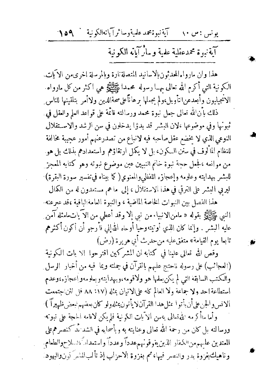 قُلْنَا: إِنَّ اسْتِعْدَادَ مُحَمَّدٍ - صَلَّى اللَّهُ عَلَيْهِ وَسَلَّمَ - لِلنُّبُوَّةِ وَالرِّسَالَةِ فَطَرِيٌّ لَمْ يَكُنْ فِيهِ شَيْءٌ مِنْ كَسْبِهِ بِعِلْمٍ وَلَا عَمَلٍ لِسَانِيٍّ وَلَا نَفْسِيٍّ، وَلَمْ يُرْوَ عَنْهُ أَنَّهُ كَانَ يَرْجُوهَا كَمَا رُوِيَ عَنْ أُمَيَّةَ بْنِ أَبِي الصَّلْتِ، بَلْ رُوِيَ عَنْ خَدِيجَةَ - رَضِيَ اللهُ عَنْهَا - أَنَّهَا لَمَّا سَمِعَتْ مِنْ غُلَامِهَا مَيْسَرَةَ أَخْبَارَ أَمَانَتِهِ وَفَضَائِلِهِ وَكَرَامَاتِهِ وَمَا قَالَ بَحِيرَى الرَّاهِبُ فِيهِ تَعَلَّقَ أَمَلُهَا بِأَنْ يَكُونَ