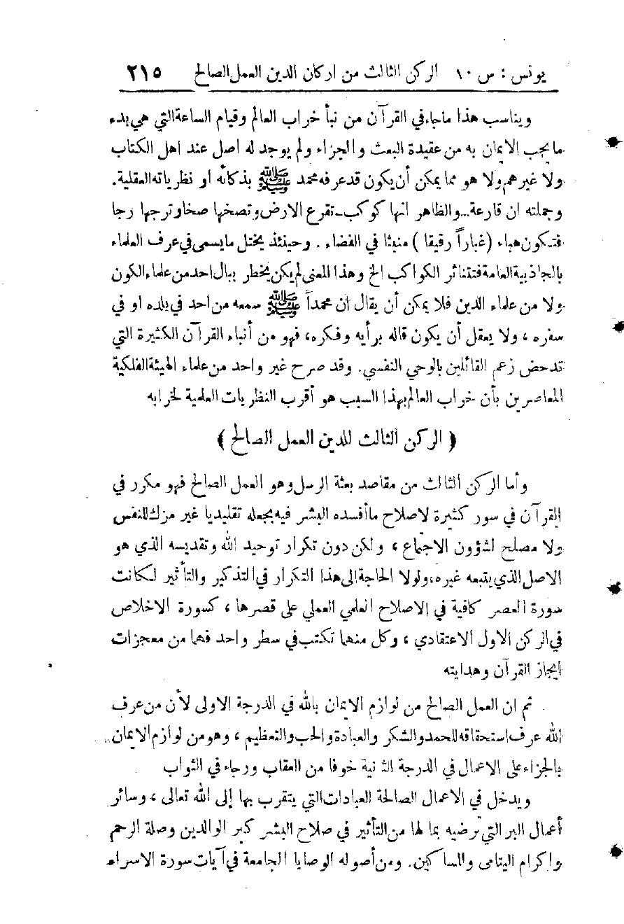 (تَقْرِيرُ مَزَايَا الْإِسْلَامِ الْعَامَّةِ فِي التَّكَالِيفِ الشَّخْصِيَّةِ مِنَ الْعِبَادَاتِ وَالْمَحْظُورَاتِ)