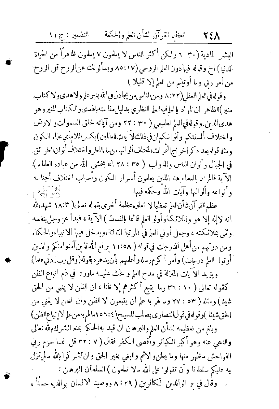 وَجَهِلَ هَذَا الْمُسْتَبْعِدُ وَأَمْثَالُهُ مَا يَعْلَمُهُ اللهُ تَعَالَى مِنْ أَنَّ شُعَاعَ الشَّمْسِ مُرَكَّبٌ مِنْ أَلْوَانِ النُّورِ السَّبْعَةِ، الَّتِي يَرَاهَا النَّاسُ فِي قَوْسِ السَّحَابِ فَهُوَ سَبْعَةُ أَضْوَاءٍ لَا ضَوْءٌ وَاحِدٌ، فَهَذَا التَّعْبِيرُ مِنْ مُفْرَدَاتِ الْقُرْآنِ الْكَثِيرَةِ الَّتِي كَشَفَ لَنَا تَرَقِّي الْعُلُومِ الطَّبِيعِيَّةِ وَالْفَلَكِيَّةِ مِنَ الْمَعْنَى فِيهَا مَا كَانَ النَّاسُ أَوِ الْعَرَبُ يَجْهَلُونَهُ فِي عَصْرِ التَّنْزِيلِ، كَتَعْبِيرِهِ عَنْ كُلِّ نَوْعٍ مِنَ النَّبَاتِ بِأَنَّهُ مَوْزُونٌ، وَتَقَدَّمَ بَيَانُهُ فِي مَبَاحِثِ الْوَحْيِ.
