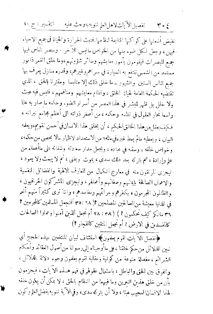 (وَنَقُولُ) إِنَّ هَذَا الِاعْتِرَاضَ يَذُوبُ فَيَزُولُ إِذَا عُرِضَ عَلَى الْأَشِعَّةِ الَّتِي اقْتَبَسْنَاهَا مِنْ ضِيَاءِ شَمْسِ الْقُرْآنِ، فِي إِعْجَازَيْهِ اللَّفْظِيِّ وَالْمَعْنَوِيِّ فِي أَوَّلِ تَفْسِيرِ هَذِهِ السُّورَةِ، ثُمَّ فِي تَفْسِيرِ الْآيَتَيْنِ (15، 16) مِنْهَا. وَأَمَّا قَوْلُهُمْ فِي إِحْدَى مُقَدِّمَاتِهِ: إِنَّ مُحَمِّدًا - صَلَّى اللَّهُ عَلَيْهِ وَسَلَّمَ - كَانَ أَفْصَحَ قُرَيْشٍ وَأَبْلَغَهَمْ فِي لُغَتِهِ، فَقَدْ بَيَّنَّا بِالنَّقْلِ الثَّابِتِ أَنَّهُ - صَلَّى اللَّهُ عَلَيْهِ وَسَلَّمَ - لَمْ يَكُنْ قَبْلَ نُزُولِ الْقُرْآنِ عَلَيْهِ يُذْكَرُ فِي فُحُولِ فُصَحَائِهِمْ وَلَا فِي وَسَطِهِمْ بَلْ لَمْ يَكُنْ يُعَدُّ مِنْهُمْ، وَإِنَّمَا صَارَ كَلَامُهُ مُمْتَازًا بِالْفَصَاحَةِ وَالْبَلَاغَةِ بِمَا اسْتَفَادَهُ مِنْ وَحْيِ الْقُرْآنِ، كَمَا اسْتَفَادَ مَنْ دُونَهُ مِنْهُ، عَلَى أَنَّهُ ظَلَّ كَكَلَامِ غَيْرِهِ مِنَ الْبَشَرِ فِي الْبُعْدِ عَنْ مُشَابَهَةِ نَظْمِ الْقُرْآنِ وَأُسْلُوبِهِ وَتَأْثِيرِهِ، وَهَذَا التَّفَاوُتُ لَا نَظِيرَ لَهُ فِي كَلَامِ بُلَغَاءِ الْبَشَرِ.
