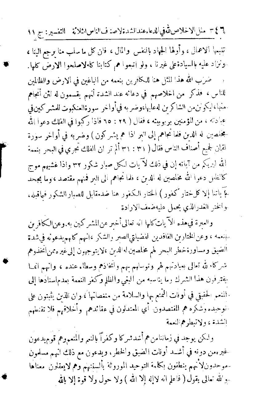 وَنَقَلَ عَنْهُ كَلَامًا مِنَ الْمَعْهُودِ مِنْ أَمْثَالِهِ الصُّوفِيَّةِ مِنْهُ النَّافِعُ وَالضَّارُّ، فَمِنَ الْحَقِّ النَّافِعِ مَا مَعْنَاهُ أَنَّهُ لَوْ لَمْ تَغْلِبْ عَلَيْهِمُ الْأَحْوَالُ لَمَا قَالُوا فِي التَّفْسِيرِ إِلَّا صَحِيحَ الْمَأْثُورِ، وَمِنَ الضَّارِّ الَّذِي أَفْسَدَ عَلَى الْمُصَدِّقِينَ بِوِلَايَةِ هَؤُلَاءِ النَّاسِ دِينَهُمْ وَهُوَ مِمَّا نَحْنُ فِيهِ قَوْلُهُ: وَكَانَ - رَضِيَ اللهُ عَنْهُ - يَقُولُ: أَنَا مُوسَى عَلَيْهِ السَّلَامُ فِي مُنَاجَاتِهِ، أَنَا عَلِيٌّ - رَضِيَ اللهُ عَنْهُ - فِي حَمَلَاتِهِ أَنَا كُلُّ وَلِيٍّ فِي الْأَرْضِ خَلَقْتُهُ بِيَدَيَّ، أُلْبِسُ مِنْهُمْ مَنْ شِئْتُ، أَنَا فِي السَّمَاءِ شَاهَدْتُ رَبِّي وَعَلَى الْكُرْسِيِّ خَاطَبْتُهُ أَنَا بِيَدِيَّ أَبْوَابُ النَّارِ غَلَّقْتُهَا، وَبِيَدِيَّ جَنَّةُ الْفِرْدَوْسِ فَتَّحْتُهَا، مَنْ زَارَنِي أَسْكَنْتُهُ جَنَّةَ الْفِرْدَوْسِ إِلَخْ، وَقَوْلُهُ وَهُوَ فِي تَفْسِيرِ الْآيَةِ: