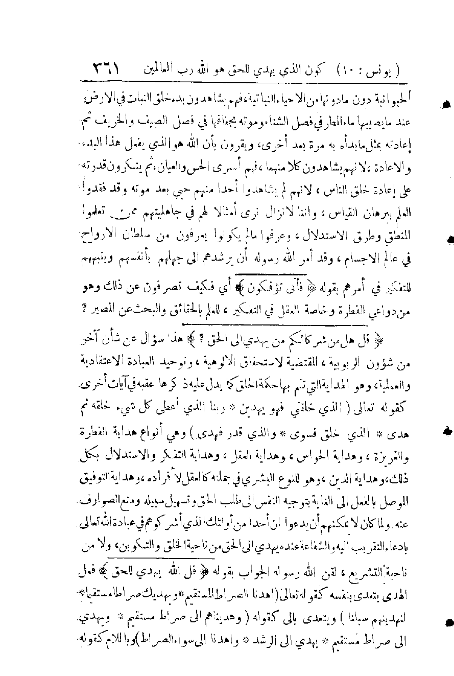 (الْمَسْأَلَةُ الْأُولَى) أَنَّ هَذَا الدِّينَ (الْإِسْلَامَ) وَحْيٌ إِلَهِيٌّ إِلَى نَبِيٍّ أُمِّيٍّ ظَهَرَ فِي أُمَّةٍ أُمِّيَّةٍ جَاهِلِيَّةٍ ; لِيُعَلِّمَهَا الْكِتَابَ وَالْحِكْمَةَ، وَيُزَكِّيَهَا بِالْعِلْمِ وَالْعَدْلِ وَالْفَضِيلَةِ، فَيَجْعَلَهَا بِهِ مُعَلِّمَةً وَهَادِيَةً لِجَمِيعِ شُعُوبِ التَّعْطِيلِ وَالْأَدْيَانِ وَالْفَلْسَفَةِ وَالْحَضَارَةِ، وَأَنَّ اللهَ تَعَالَى قَدْ شَهِدَ فِي كِتَابِهِ بِأَنَّهُ أَكْمَلَ هَذَا الدِّينَ لِعِبَادِهِ فِي آخِرِ عُمْرِ نَبِيِّهِ، لَيْسَ لِأَحَدٍ أَنْ يَزِيدَ فِيهِ بَعْدَهُ عَقِيدَةً وَلَا عِبَادَةً وَلَا تَحْرِيمًا دِينِيًّا مُطْلَقًا، وَلَا تَشْرِيعًا مَدَنِيًّا، إِلَّا مَا أَذِنَ بِهِ لِأُولِي الْأَمْرِ مِنَ الِاجْتِهَادِ عَلَى أَسَاسِ نُصُوصِهِ وَقَوَاعِدِهِ، فَكَانَ أَعْلَمَ النَّاسِ وَأَفْقَهَهُمْ بِهِ وَأَصَّحَهُمْ دَعْوَةً إِلَيْهِ بِالْعِلْمِ وَالْعَمَلِ، وَالْحُكْمِ بَيْنَ النَّاسِ بِالْحَقِّ وَالْعَدْلِ، أُولَئِكَ الْأُمِّيُّونَ الَّذِينَ تَلَقَّوْهُ عَنْ ذَلِكَ النَّبِيِّ الْأُمِّيِّ صَلَوَاتُ اللهِ وَسَلَامُهُ عَلَيْهِ، وَهُمْ خُلَفَاؤُهُ وَأَصْحَابُهُ - رَضِيَ اللهُ عَنْهُمْ - فَهَذِهِ إِحْدَى مُعْجِزَاتِهِ إِذْ لَوْ كَانَ هَذَا الدِّينُ وَضْعًا بَشَرِيًّا لَكَانَ كَسَائِرِ الْعُلُومِ وَالْأَعْمَالِ الْبَشَرِيَّةِ الَّتِي تَظْهَرُ مَبَادِئُهَا الْأُولَى نَاقِصَةً ثُمَّ تَنْمَى (وَفِي لُغَةٍ ضَعِيفَةٍ اشْتُهِرَتْ تَنْمُو) وَتَتَكَامَلُ بِالتَّدْرِيجِ، فَهَذِهِ سُنَّةٌ مِنَ السُّنَنِ الْمُطَّرِدَةِ فِي عُلُومِ الْبَشَرِ.