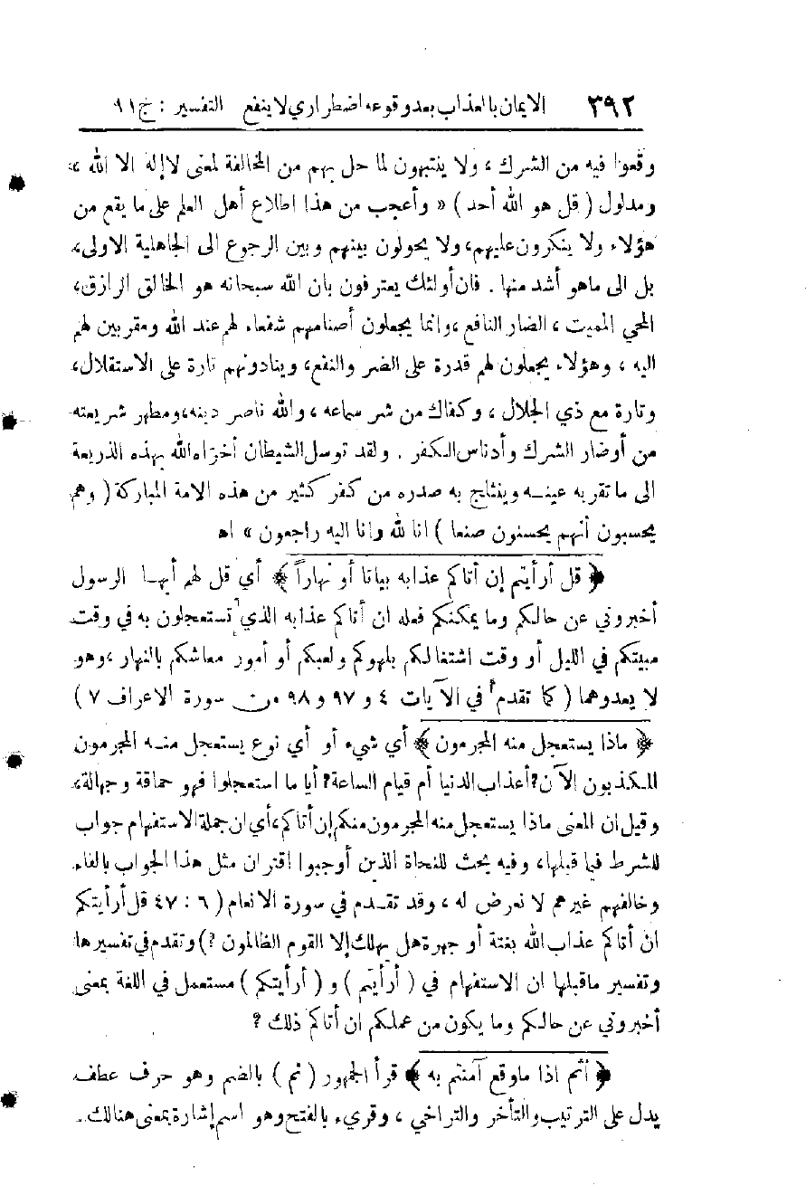 وَبَعْضُ الْعُلَمَاءِ يَجْرِي عَلَى هَذَا الْأُسْلُوبِ فَيُشَكِّكُ تِلْمِيذَهُ أَوْ مُنَاظِرَهُ فِيمَا لَا شَكَّ فِيهِ عِنْدَهُمَا لِيَبْنِيَ عَلَيْهِ حُكْمًا آخَرَ. وَيَجِبُ فِي مِثْلِ هَذَا أَنْ يَكُونَ فِعْلُ الشَّرْطِ بِـ ((إِنِ)) الَّتِي وُضِعَتْ لِلدَّلَالَةِ عَلَى عَدَمِ وُقُوعِهِ أَوْ تَنْزِيلِهِ مَنْزِلَةَ مَا لَا يَقَعُ، دُونَ ((إِذَا)) الدَّالَّةِ عَلَى أَنَّ الْأَصْلَ فِي فِعْلِ شَرْطِهَا الْوُقُوعُ (فَاسْأَلِ الَّذِينَ يَقْرَءُونَ الْكِتَابَ مِنْ قَبْلِكَ) هَذَا جَوَابُ الشَّرْطِ الْمُقَدَّرِ، قَالَ ابْنُ عَبَّاسٍ لَمْ يَشُكَّ رَسُولُ اللهِ - صَلَّى اللَّهُ عَلَيْهِ وَسَلَّمَ - وَلَمْ يَسْأَلْ، وَرُوِيَ مِثْلُهُ عَنْ سَعِيدِ بْنِ جُبَيْرٍ وَالْحَسَنِ الْبَصْرِيِّ قَالَاهُ فَهْمًا لُغَوِيًّا، وَرُوِيَ عَنْ قَتَادَةَ خَبَرًا قَالَ: ذُكِرَ لَنَا أَنَّ رَسُولَ اللهِ - صَلَّى اللَّهُ عَلَيْهِ وَسَلَّمَ - قَالَ: ((لَا أَشُكُّ وَلَا أَسْأَلُ)) وَلَمْ يُسَمِّ الصَّحَابِيَّ الَّذِي ذَكَرَهُ فَهُوَ مُرْسَلٌ، وَالْمُرَادُ بِالْكِتَابِ جِنْسُهُ، أَيْ فَاسْأَلِ الَّذِينَ يَقْرَءُونَ كُتُبَ الْأَنْبِيَاءِ كَالْيَهُودِ وَالنَّصَارَى فَإِنَّهُمْ يَعْلَمُونَ أَنَّ مَا أَنْزَلْنَاهُ إِلَيْكَ مِنَ الشَّوَاهِدِ حَقٌّ لَا يَسْتَطِيعُونَ إِنْكَارَهُ، وَقَالَ بَعْضُ الْمُفَسِّرِينَ: إِنَّ الْمُرَادَ سُؤَالُ مَنْ آمَنَ مِنْهُمْ كَعَبْدِ اللهِ بْنِ سَلَامٍ مِنْ عُلَمَاءِ الْيَهُودِ، وَتَمِيمٍ الدَّارِيِّ مِنْ عُلَمَاءِ النَّصَارَى وَلَا حَاجَةَ إِلَيْهِ، وَالْآيَةُ بَلِ السُّورَةُ نَزَلَتْ فِي مَكَّةَ وَلَمْ يَكُنْ أَحَدٌ مِنْ أَهْلِ الْكِتَابِ آمَنَ. وَمِمَّا يُؤَكِّدُ كَوْنَ السُّؤَالِ مَفْرُوضًا فَرْضًا قَوْلُهُ: (لَقَدْ جَاءَكَ الْحَقُّ مِنْ رَبِّكَ) فَهَذِهِ الشَّهَادَةُ الْمُؤَكَّدَةُ بِالْقَسَمِ مِنْ رَبِّهِ، تَجْتَثُّ احْتِمَالَ إِرَادَةِ الشَّكِّ وَالسُّؤَالِ بِالْفِعْلِ مِنْ أَصْلِهِ، وَيَزِيدُهَا تَأْكِيدًا قَوْلُهُ تَعَالَى: (فَلَا تَكُونَنَّ مِنَ الْمُمْتَرِينَ) أَيْ مِنْ فَرِيقِ