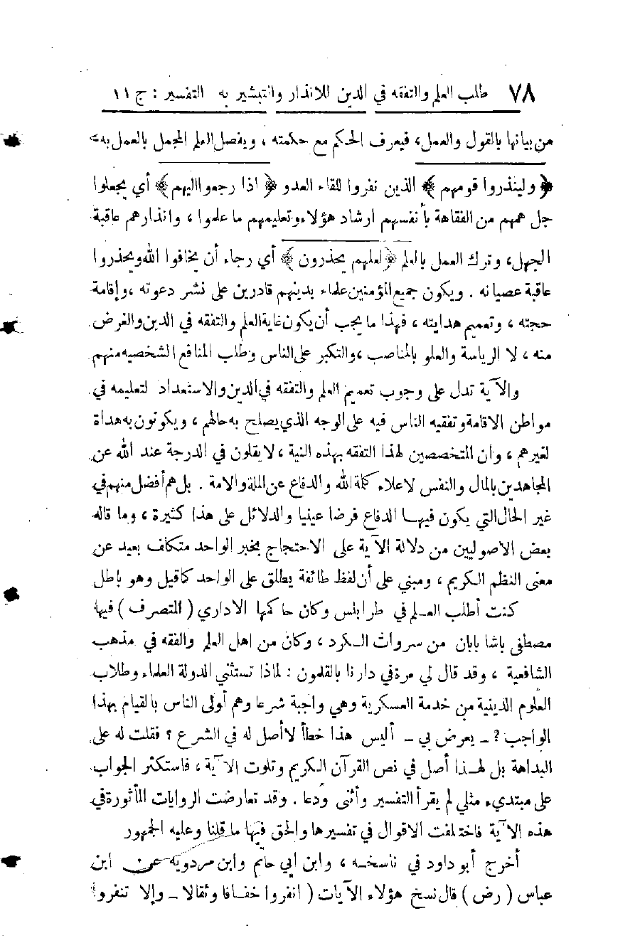 (تَمَّ تَفْسِيرُ سُورَةِ بَرَاءَةَ بِفَضْلِ اللهِ وَتَوْفِيقِهِ فِي شَهْرِ صَفَرٍ سَنَةَ خَمْسِينَ وَثَلَاثِمِائَةٍ وَأَلْفٍ وَبَقِيَ تَلْخِيصُ مَا فِيهَا مِنْ أُصُولِ الدِّينِ وَأَحْكَامِهِ وَسِيَاسَتِهِ وَآدَابِهِ وَسُنَنِ اللهِ فِي ذَلِكَ، فَنَسْأَلُهُ تَعَالَى تَوْفِيقَنَا فِيهِ لِلْحَقِّ الَّذِي يَرْضَاهُ وَيَنْفَعُ عِبَادَهُ) .