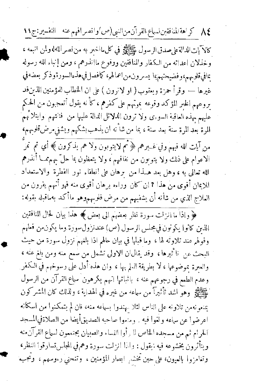 (1 و2) افْتُتِحَتْ هَذِهِ السُّورَةُ بِقَوْلِهِ تَعَالَى: (بَرَاءَةٌ مِنَ اللهِ وَرَسُولِهِ إِلَى الَّذِينَ عَاهَدْتُمْ مِنَ الْمُشْرِكِينَ) وَعَطَفَ عَلَيْهَا قَوْلَهُ تَعَالَى: (وَأَذَانٌ مِنَ اللهِ وَرَسُولِهِ إِلَى النَّاسِ يَوْمَ الْحَجِّ الْأَكْبَرِ) (9: 3) إِلَخْ فَقَرَنَ تَعَالَى اسْمَ نَبِيِّهِ بِاسْمِهِ فِي تَبْلِيغِ أَحْكَامِهِ وَتَنْفِيذِهَا.