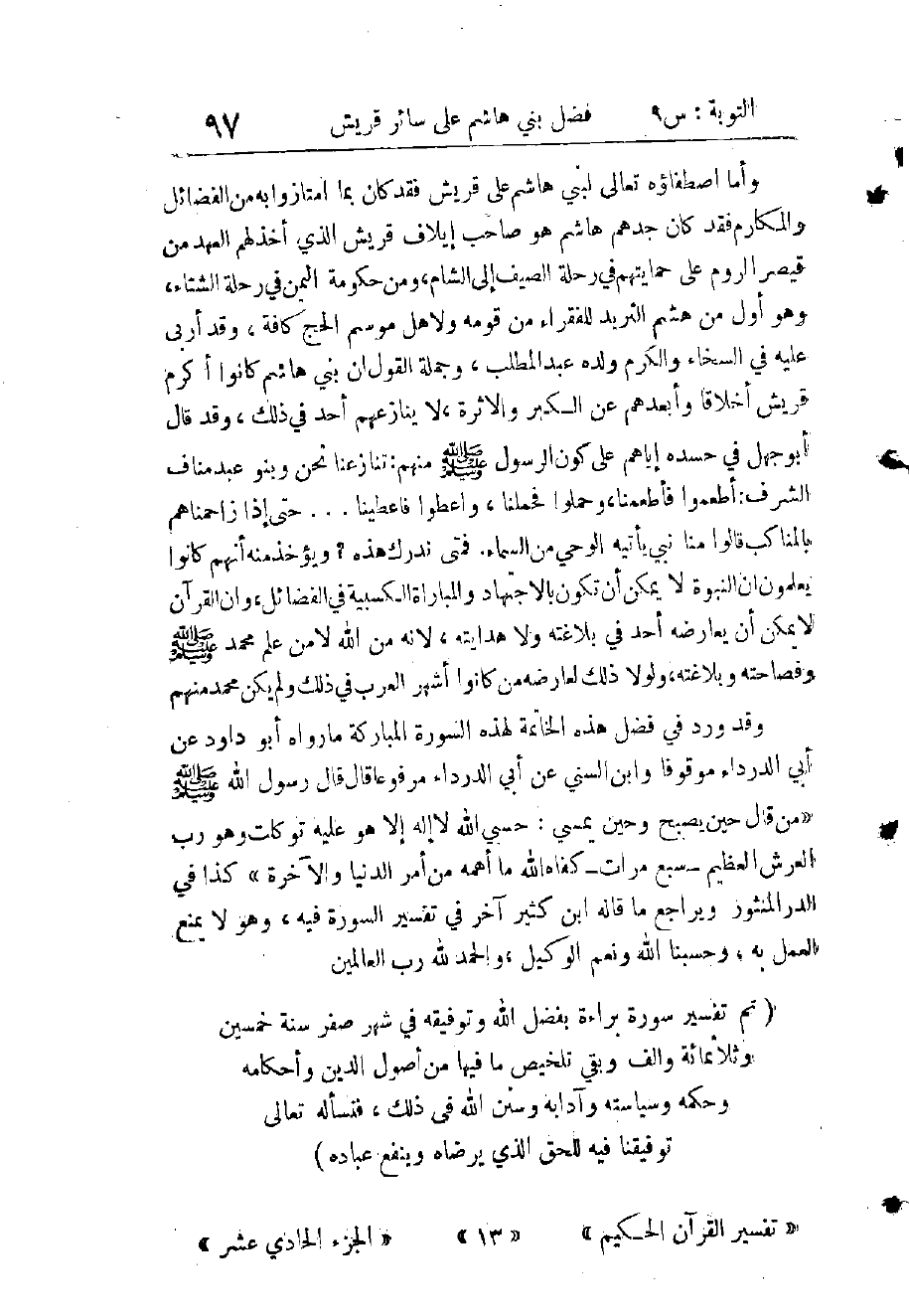 (30) إِنْذَارُ النَّاسِ وَتَعْلِيمُهُمْ - الْآيَةُ (122) .