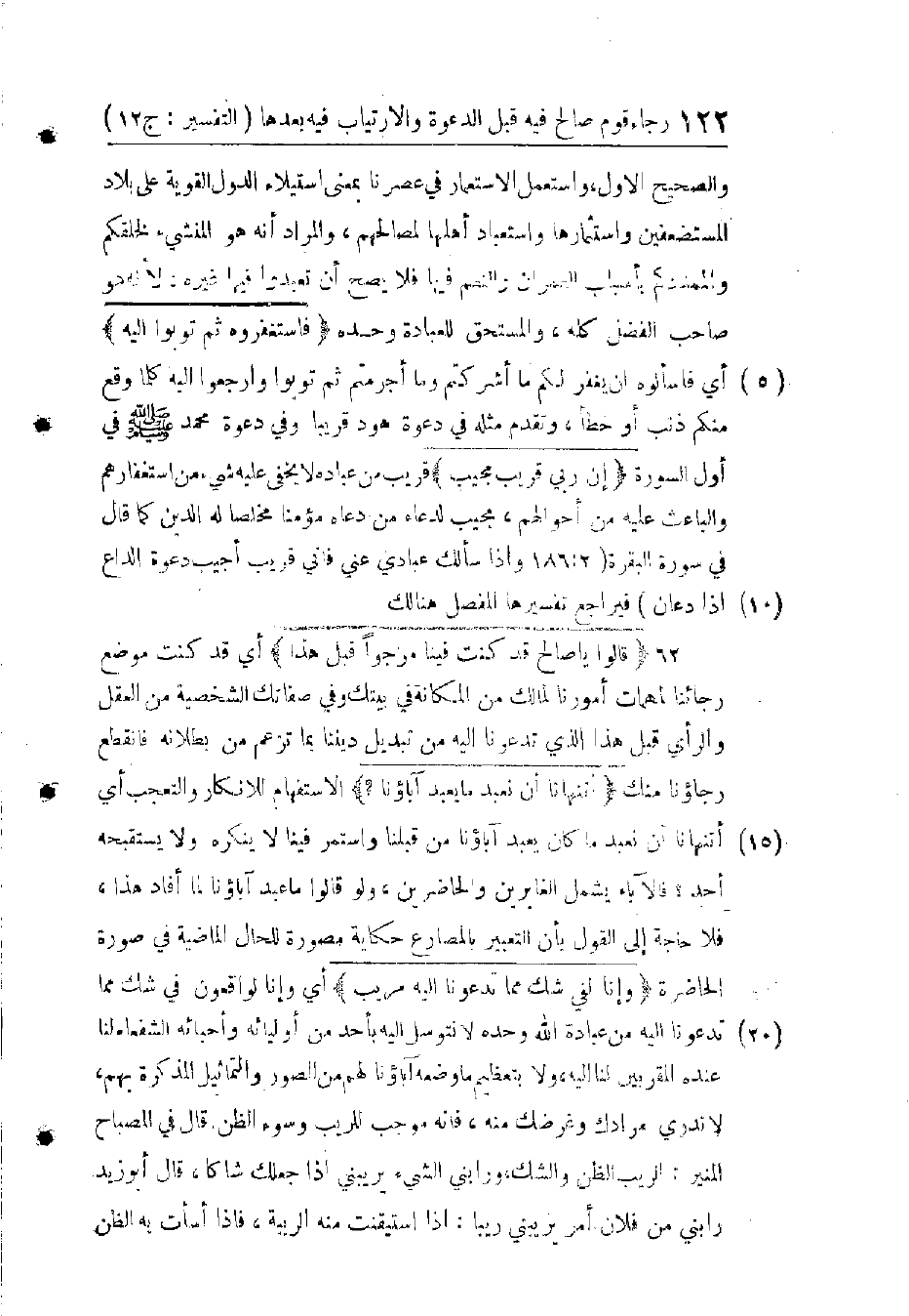 - قَالَ يَا قَوْمِ أَرَهْطِي أَعَزُّ عَلَيْكُمْ مِنَ اللهِ - هَذَا اسْتِفْهَامٌ إِنْكَارِيٌّ، أَيْ: أَرَهْطِي أَعَزُّ وَأَكْرَمُ عَلَيْكُمْ مِنَ اللهِ الَّذِي أَدْعُوكُمْ إِلَيْهِ بِأَمْرِهِ - وَاتَّخَذْتُمُوهُ وَرَاءَكُمْ ظِهْرِيًّا - أَيْ أَشْرَكْتُمْ بِهِ وَجَعَلْتُمُوهُ كَالشَّيْءِ اللَّقَّا الَّذِي يُنْبَذُ وَرَاءَ الظَّهْرِ لِهَوَانِهِ عَلَى نَابِذِهِ وَعَدَمِ حَاجَتِهِ إِلَيْهِ، فَيُنْسَى حَتَّى لَا يُحْسَبَ لَهُ حِسَابٌ. تَقُولُ الْعَرَبُ: جَعَلَهُ بِظَهْرٍ وَظِهْرِيًّا وَاتَّخَذَهُ ظِهْرِيًّا بِالْكَسْرِ وَالتَّشْدِيدِ، أَيْ نَسْيًا مَنْسِيًّا لَا يُذْكَرُ كَأَنَّهُ غَيْرُ مَوْجُودٍ، وَكَسْرُ الظَّاءِ مِنْ تَصَرُّفِهِمْ فِي النَّسَبِ، وَكَانَ الْقَوْمُ يُؤْمِنُونَ بِاللهِ وَيُشْرِكُونَ بِهِ، وَلَا عَجَبَ مِنْ حَالِهِمْ هَذِهِ فَإِنَّهُ شَأْنُ أَكْثَرِ النَّاسِ الْيَوْمَ، لَا يُرَاقِبُونَ اللهَ فِي أَقْوَالِهِمْ وَلَا فِي أَعْمَالِهِمْ فَيَرْجُوهُ إِذَا أَحْسَنُوا، وَيَخَافُوهُ إِذَا أَسَاءُوا، أَوْ فَيَمْتَنِعُوا عَنِ الْإِسَاءَةِ وَيَتَسَابَقُوا إِلَى الْإِحْسَانِ ابْتِغَاءَ مَرْضَاتِهِ - إِنَّ رَبِّي بِمَا تَعْمَلُونَ مُحِيطٌ - عِلْمًا فَهُوَ يُحْصِيهِ عَلَيْكُمْ وَيَجْزِيكُمْ بِهِ، وَأَمَّا رَهْطِي فَلَا يَسْتَطِيعُونَ لَكُمْ ضَرًّا وَلَا نَفْعًا.
