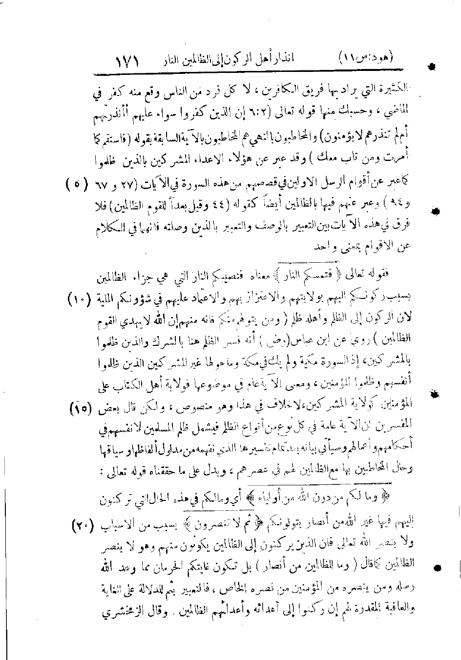 (الْأَوَّلِ) قَوْلُهُ بَعْدَ بَيَانِ قِسْمَيِ الْيَئُوسِ الْكَفُورِ، وَالْفَرِحِ الْفَخُورِ مِنَ النَّاسِ: - إِلَّا الَّذِينَ صَبَرُوا وَعَمِلُوا الصَّالِحَاتِ - الْآيَةَ.