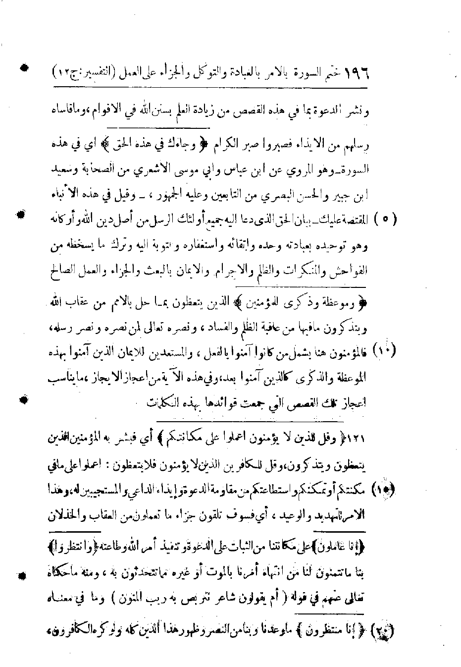 (الشَّاهِدُ الْأَوَّلُ) بَيَّنَ اللهُ - تَعَالَى - لَنَا بَعْدَ مَا تَقَدَّمَ آنِفًا مِنْ بَدْءِ الْخَلْقِ حِكْمَتَهُ الْعُظْمَى فِيهِ لِلْبَشَرِ بِقَوْلِهِ: - لِيَبْلُوَكُمْ أَيُّكُمْ أَحْسَنُ عَمَلًا - 7 فَإِنَّ إِحْسَانَهُمْ لِأَعْمَالِهِمُ الَّتِي أَعَدَّهُمْ لَهَا هِيَ الَّتِي تُظْهِرُ مَا فِي هَذَا الْخَلْقِ عُلْوِيِّهِ وَسُفْلِيِّهِ مِنَ الْحِكَمِ وَالْأَسْرَارِ الَّتِي لَا حَدَّ لَهَا وَلَا نِهَايَةَ، بَيَّنَ هَذَا بِأُسْلُوبِ الِالْتِفَاتِ عَنِ الْخَبَرِ إِلَى الْخِطَابِ الْعَامِّ، وَيَا لَهُ مِنْ أُسْلُوبٍ لَا يُعْرَفُ لَهُ ضَرِيبٌ فِي كَلَامِ بُلَغَاءِ الْبَشَرِ، ثُمَّ الْتَفَتَ عَنْهُ إِلَى خِطَابِ الرَّسُولِ - صَلَّى اللَّهُ عَلَيْهِ وَسَلَّمَ - بِقَوْلِهِ: - وَلَئِنْ قُلْتَ إِنَّكُمْ مَبْعُوثُونَ مِنْ بَعْدِ الْمَوْتِ لَيَقُولَنَّ الَّذِينَ كَفَرُوا إِنْ هَذَا إِلَّا سِحْرٌ مُبِينٌ - 7 وَفِي هَذَا الْخَبَرِ الْمُؤَكَّدِ بِصِيغَةِ الْقَسَمِ بَيَانٌ لِسُنَّتَيْنِ مِنْ سُنَنِ اللهِ - تَعَالَى - فِي الْبَشَرِ، إِحْدَاهَا فِي حَالَةٍ مِنْ أَحْوَالِ اجْتِمَاعِهِمْ، وَمَوْضِعُهَا الْفَصْلُ الثَّالِثُ، وَالْأُخْرَى فِي نَوْعٍ مِنْ أَنْوَاعِ غَرَائِزِهِمْ وَطِبَاعِهِمْ، وَهِيَ أَنَّهُمْ إِذَا أُخْبِرُوا بِشَيْءٍ لَمْ تَصِلْ إِلَى إِدْرَاكِهِ عُقُولُهُمْ أَنْكَرُوهُ، عَلَى أَنَّهُمْ مُسْتَعِدُّونَ بِالْفِطْرَةِ لِلْعِلْمِ بِكُلِّ شَيْءٍ كَمَا قَالَ - تَعَالَى -: - وَعَلَّمَ آدَمَ الْأَسْمَاءَ كُلَّهَا - 2: 31 فَإِذَا قَالَ لَهُمُ الرَّسُولُ الْمُخْبِرُ إِنَّ هَذَا الْخَبَرَ عَنِ اللهِ الْقَادِرِ عَلَى كُلِّ شَيْءٍ، وَجَاءَهُمْ بِالْآيَةِ الدَّالَّةِ عَلَى صِدْقِهِ مِنْ عِلْمِيَّةٍ أَوْ عَقْلِيَّةٍ يَعْجِزُونَ عَنْ مِثْلِهَا قَالَ أَكْثَرُهُمْ: - إِنْ هَذَا إِلَّا سِحْرٌ مُبِينٌ - أَيْ: بَيِّنٌ ظَاهِرٌ، يَعْنُونَ أَنَّهُمْ مَا عَجَزُوا عَنْ مِثْلِهَا إِلَّا لِأَنَّ لَهَا سَبَبًا خَفِيًّا عَلَيْهِمْ قَدْ يَعْرِفُهُ غَيْرُهُمْ وَقَدْ يَعْرِفُونَهُ بَعْدُ، فَهَذِهِ سُنَّةٌ مِنْ سُنَنِهِ - تَعَالَى - فِيهِمْ فِي حَالٍ مِنْ أَحْوَالِهِمُ النَّاقِصَةِ الْمُتَعَارِضَةِ كَمَا بَيَّنْتُهُ فِي مَحَلِّهِ مِنْ قَبْلُ، وَالْمُرَادُ هُنَا التَّذْكِيرُ لَا تَفْصِيلُهُ وَتَحْقِيقُهُ.