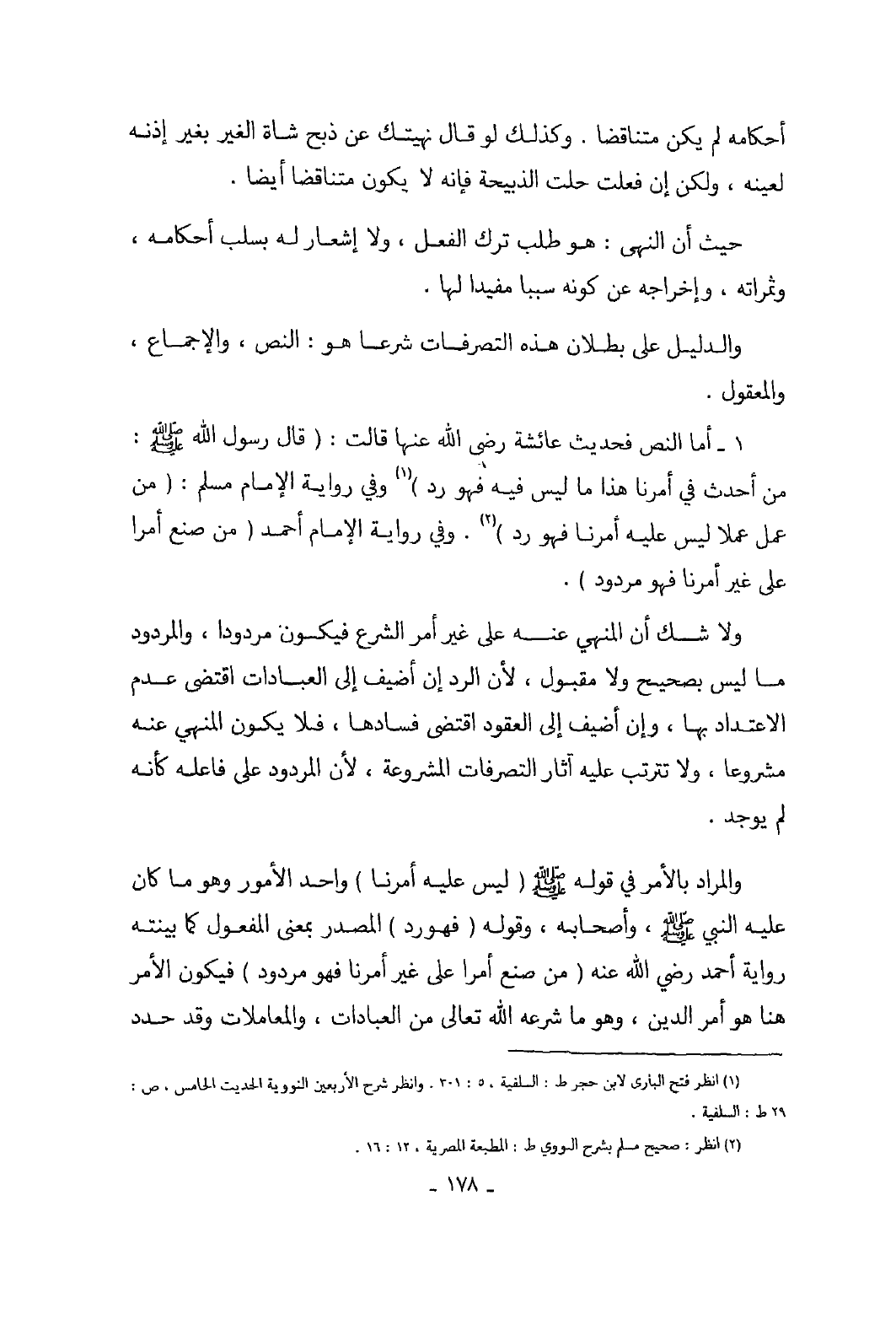 الله فِي رِوَايَة أَن البيع بَاطِل طردا لقاعدته والْحَدِيث حجَّة على هَذِه الرِّوَايَة