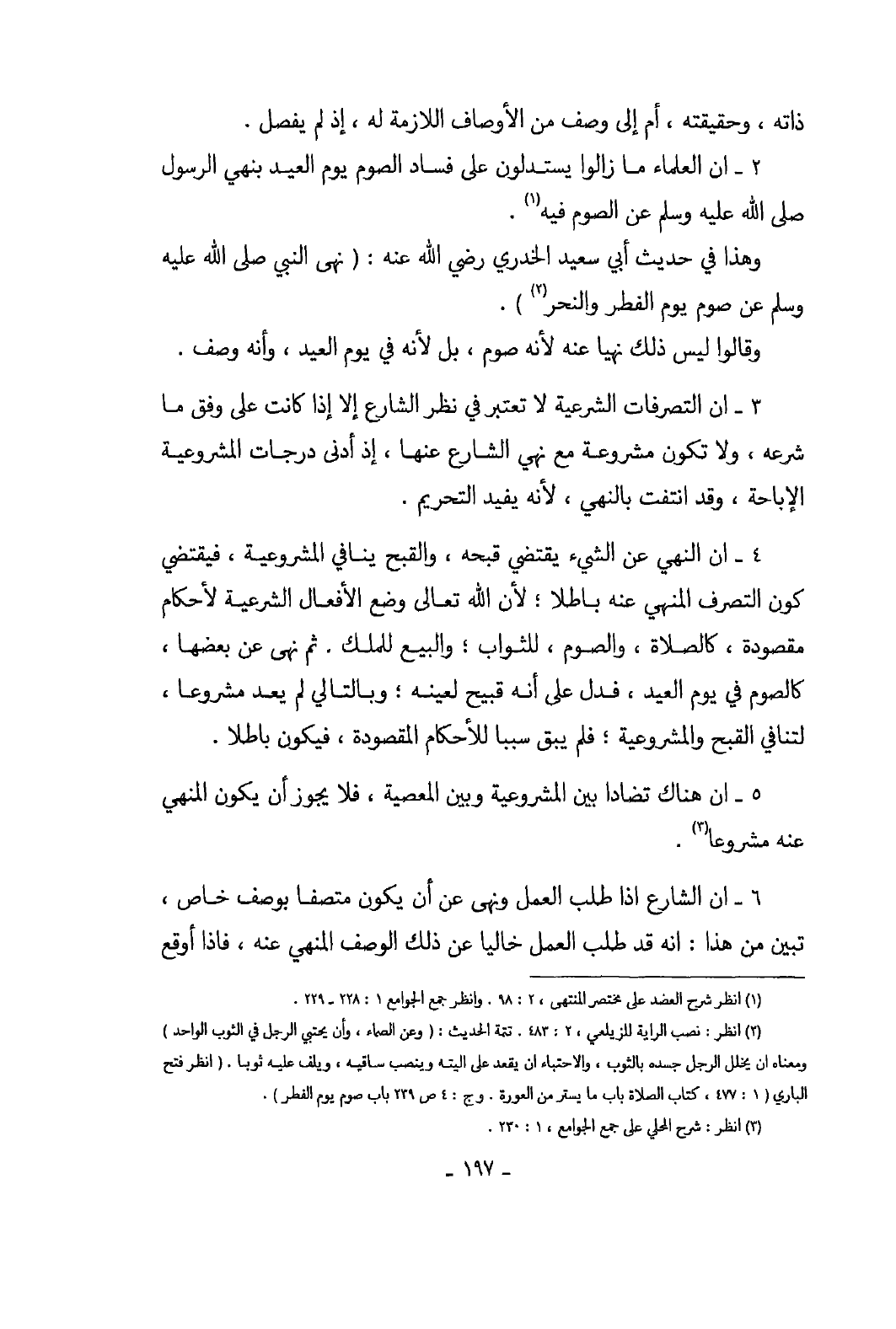 قَالُوا لِأَن السّفر فِي نَفسه حسن مُبَاح والعصيان بِقطع الطَّرِيق وَنَحْوه مجاور لَهُ فَكَانَ كَالْبيع وَقت النداء وَهَذَا مَمْنُوع بل الْمحرم هُوَ نفس السّفر كَمَا فِي الصَّوْم يَوْم الْعِيد سَوَاء وَإِذا كَانَت الْمعْصِيَة حَاصِلَة بِنَفس السّفر فَلَا يكون هَذَا السّفر سَببا للرخص الشَّرْعِيّ لما بَينا من التَّنَافِي بَين الْمعْصِيَة وَالصِّحَّة الْمَشْرُوعَة فصرفهم الْمعْصِيَة إِلَى المجاور لَيْسَ بِصَحِيح وَكَذَلِكَ قَوْلهم فِيمَا إِذا بَاعَ بِخَمْر أَو خِنْزِير أَن الْخلَل لَيْسَ فِي ركن البيع وَمحله بل فِي الثّمن الَّذِي هُوَ تَابع وَهُوَ كَونه مَالا غير مُتَقَوّم ففسد البيع بوصفه دون أَصله وَوَجَب ثمن الْمثل وَكَذَلِكَ فِي بيع الرِّبَوِيّ بِجِنْسِهِ مُتَفَاضلا وَلَا ريب فِي أَن الثّمن من الْأَركان الْمَقْصُودَة فِي البيع فِي نظر الشَّارِع وَلِهَذَا ابطل بيع القلادة وَالتَّمْر الَّذِي بيع مُتَفَاضلا