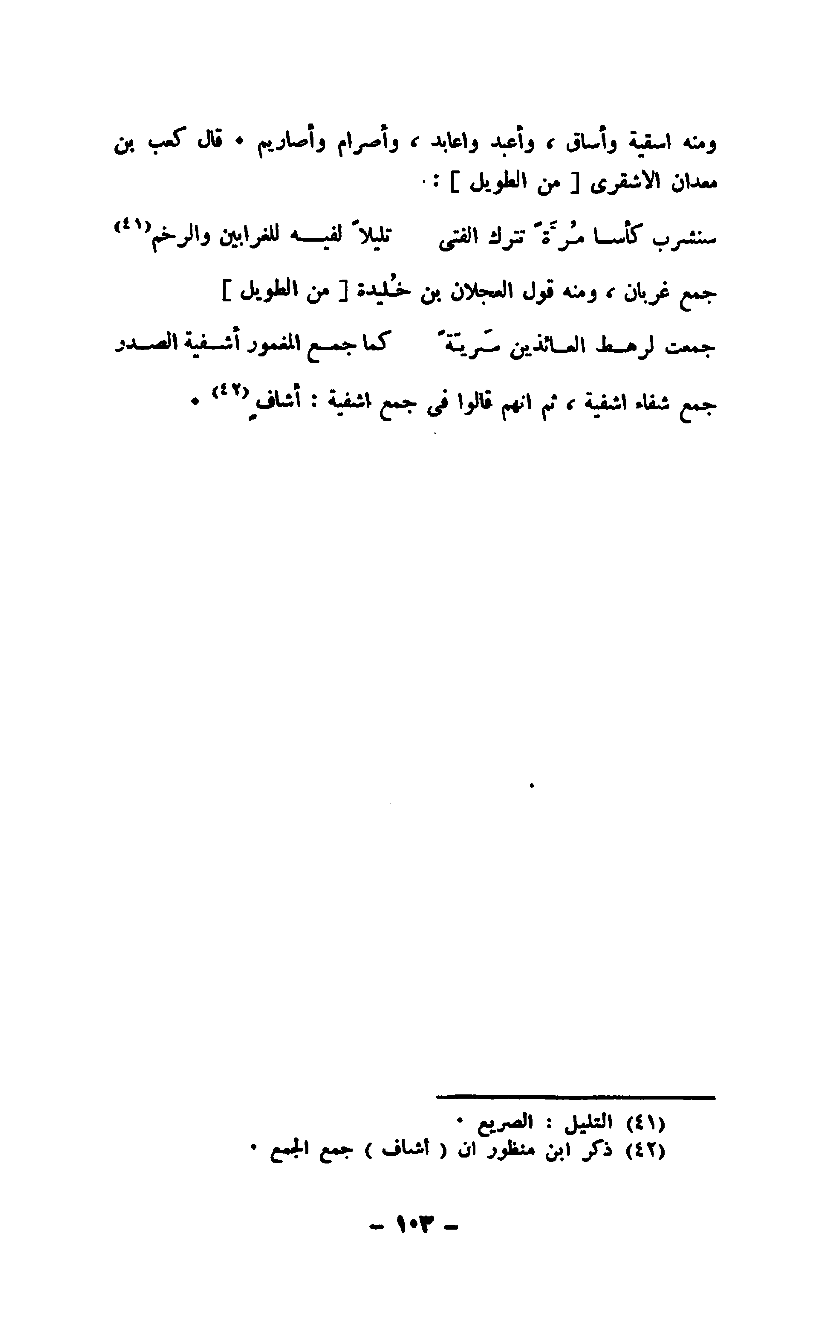 ومنه اسقيه وأساق، وأعبد وأعابد، وأصرام وأصاريم. قال كعب بن معدان الأشقري " من الطويل ":
