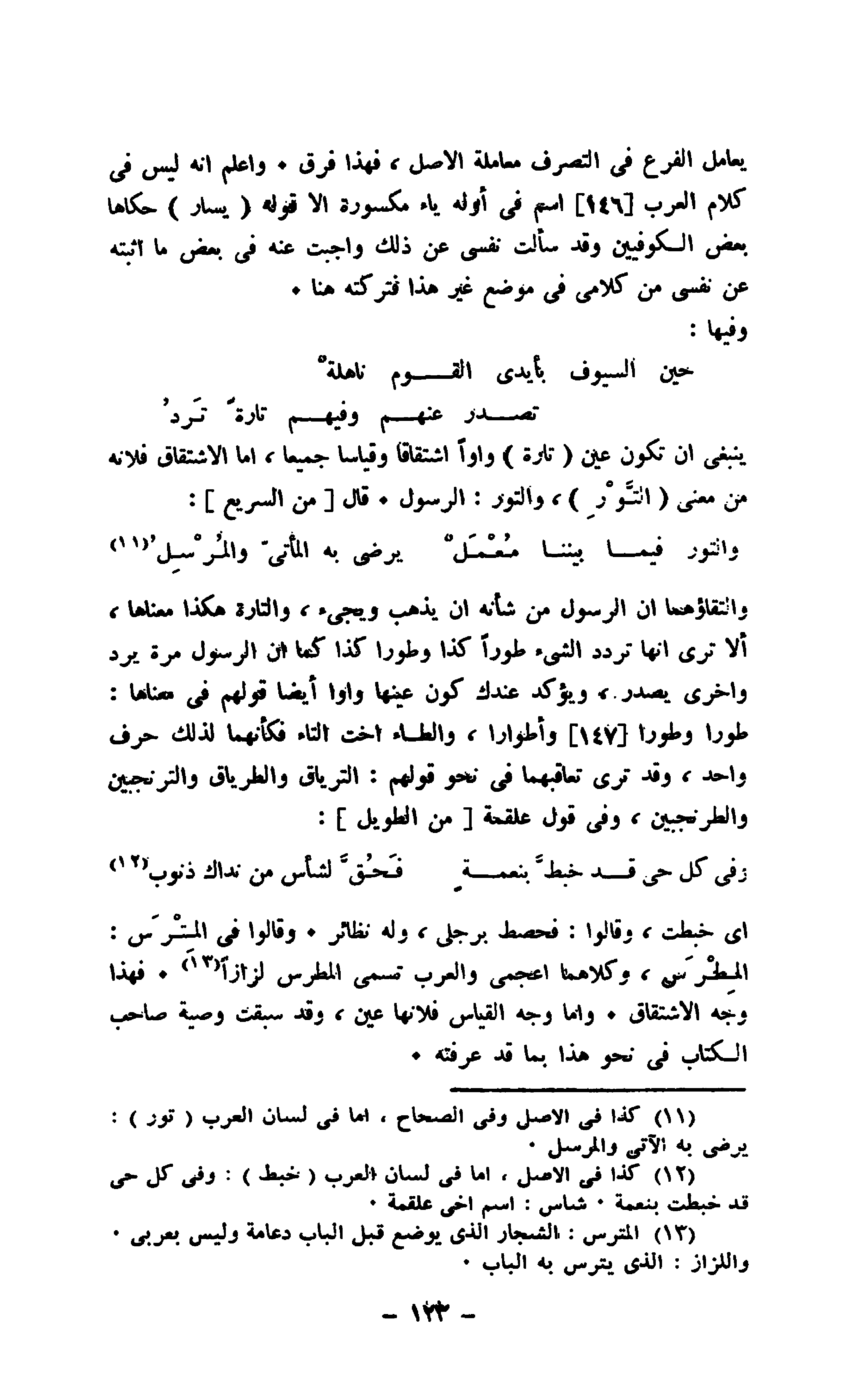 ينبغي أن تكون عين " تارة " واوا اشتقاقا وقياسا جميعا، أما الاشتقاق فلأنه من معنى " التَّوْرِ "، والتور: الرسول. قال " من السريع ":
