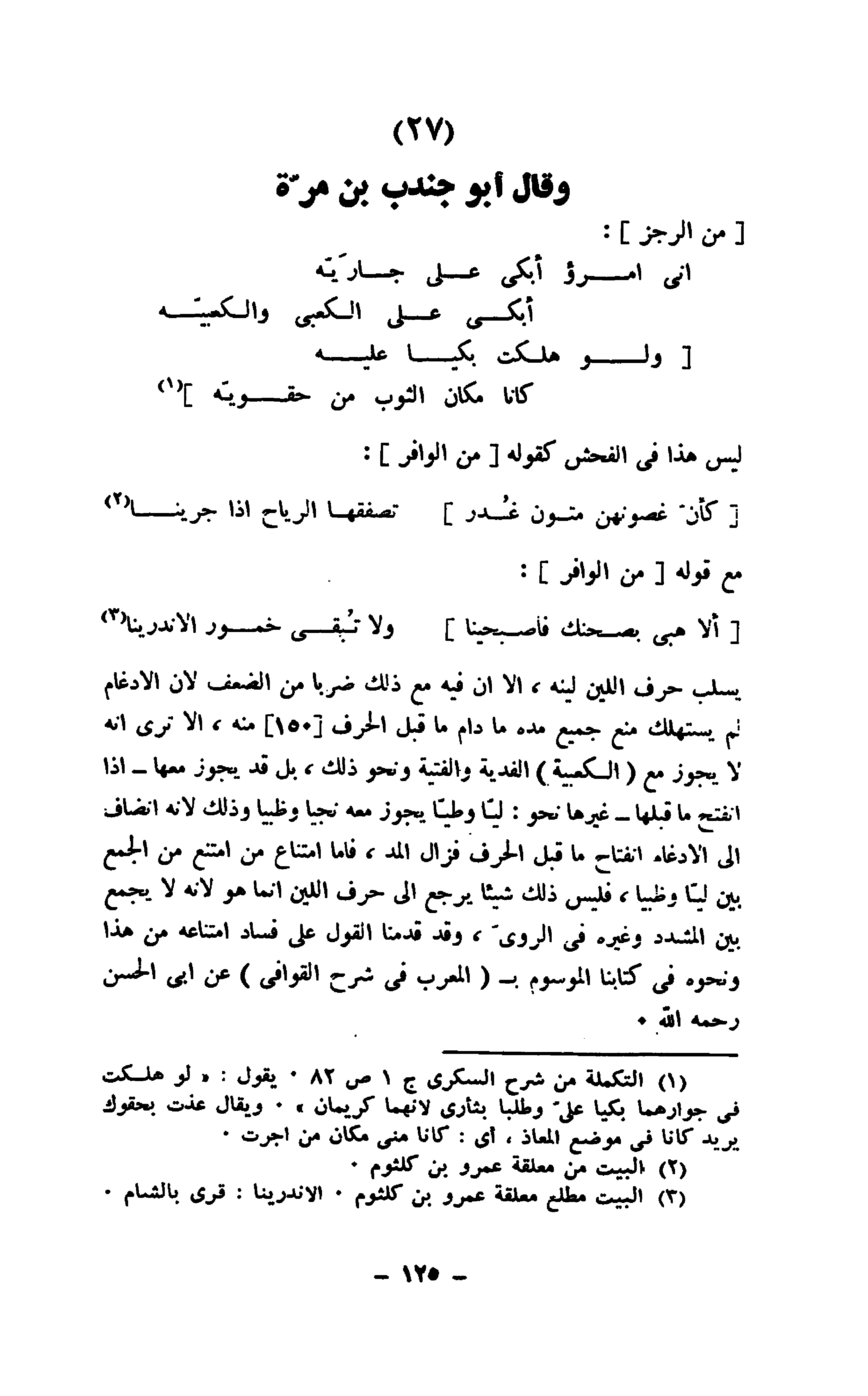 أنى امرؤ أبكي على جارَيه ... أبكي على الكعبي والكعبيّة