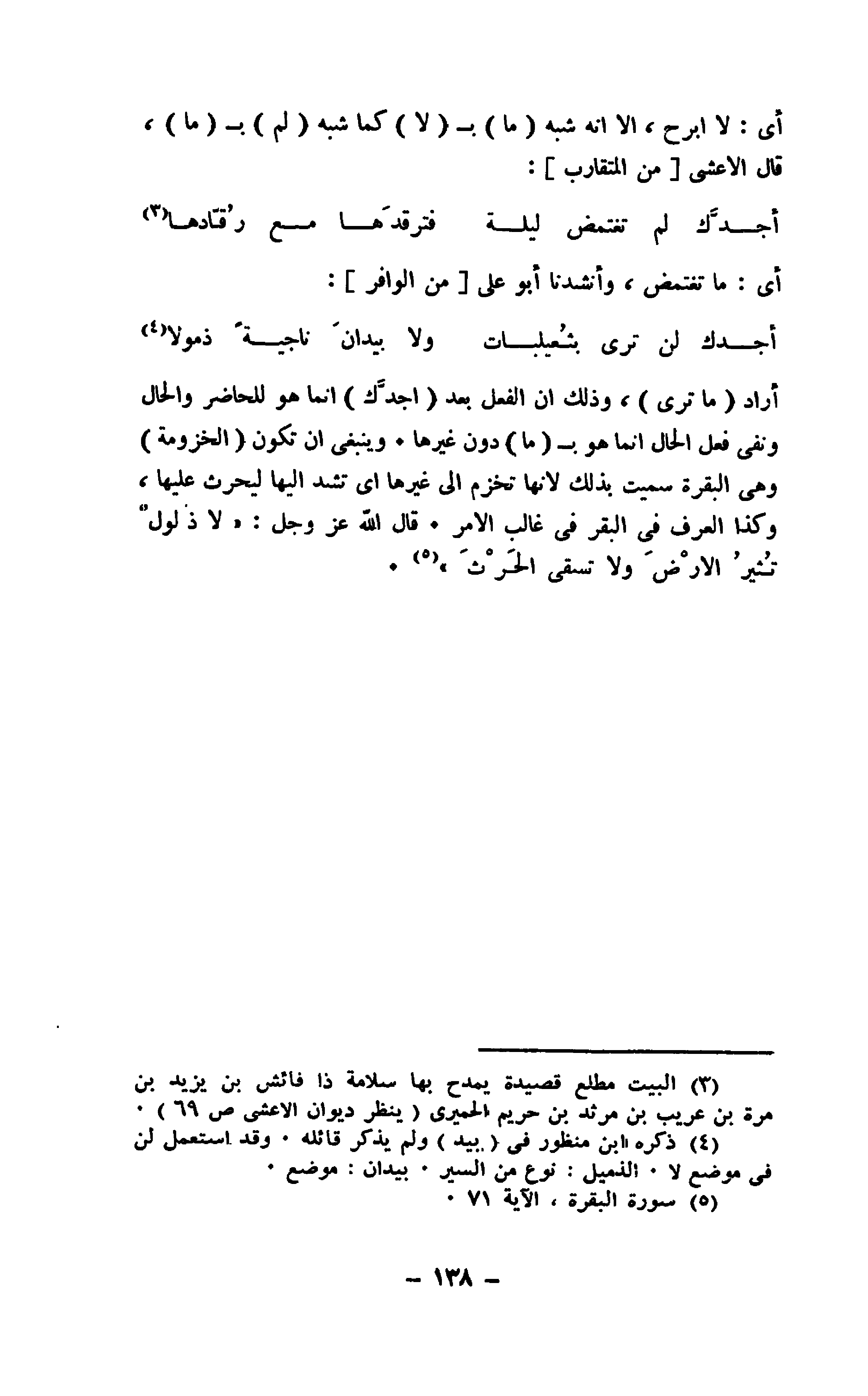 أي: لا ابرح، إلا إنه شبه " ما " ب " لا " كما شبه " لم " ب " ما "، قال الأعشى " من المتقارب":