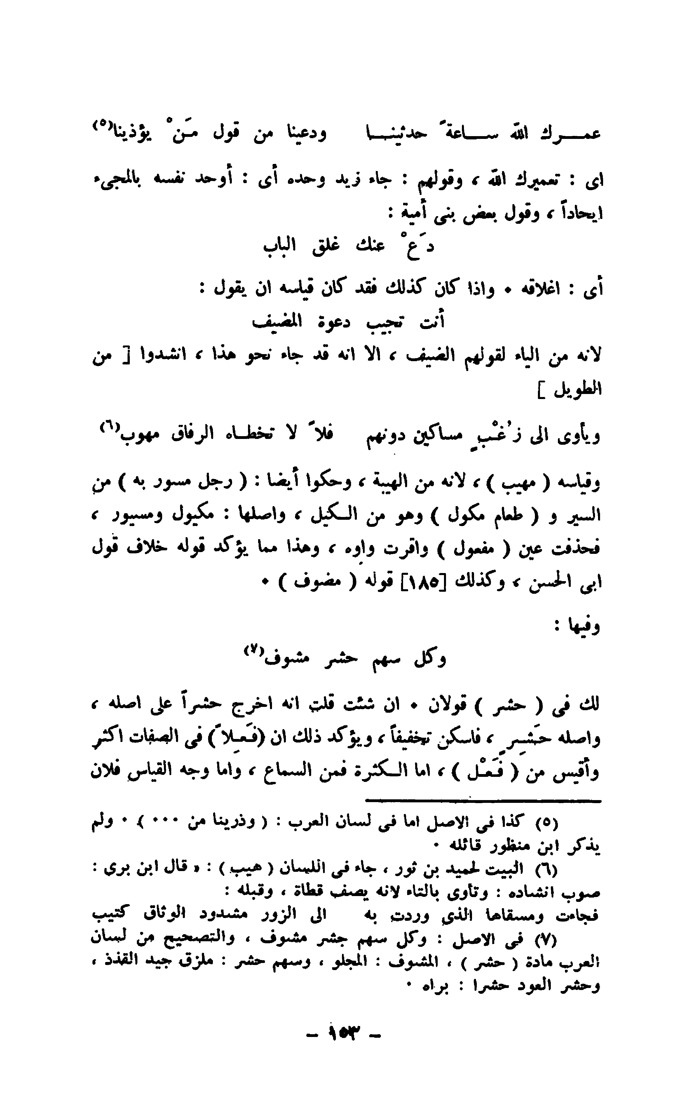 لك في " حشر " قولان. أن شئت قلت أنه أخرج حشراً على أصله، وأصله حَشِر، فأسكن تخفيفا، ويؤكد ذلك أن " فَعِلاً " في الصفات أكثر وأقيس من " فَعْل "، أما الكثرة فمن السماع، واما وجه القياس فلأن