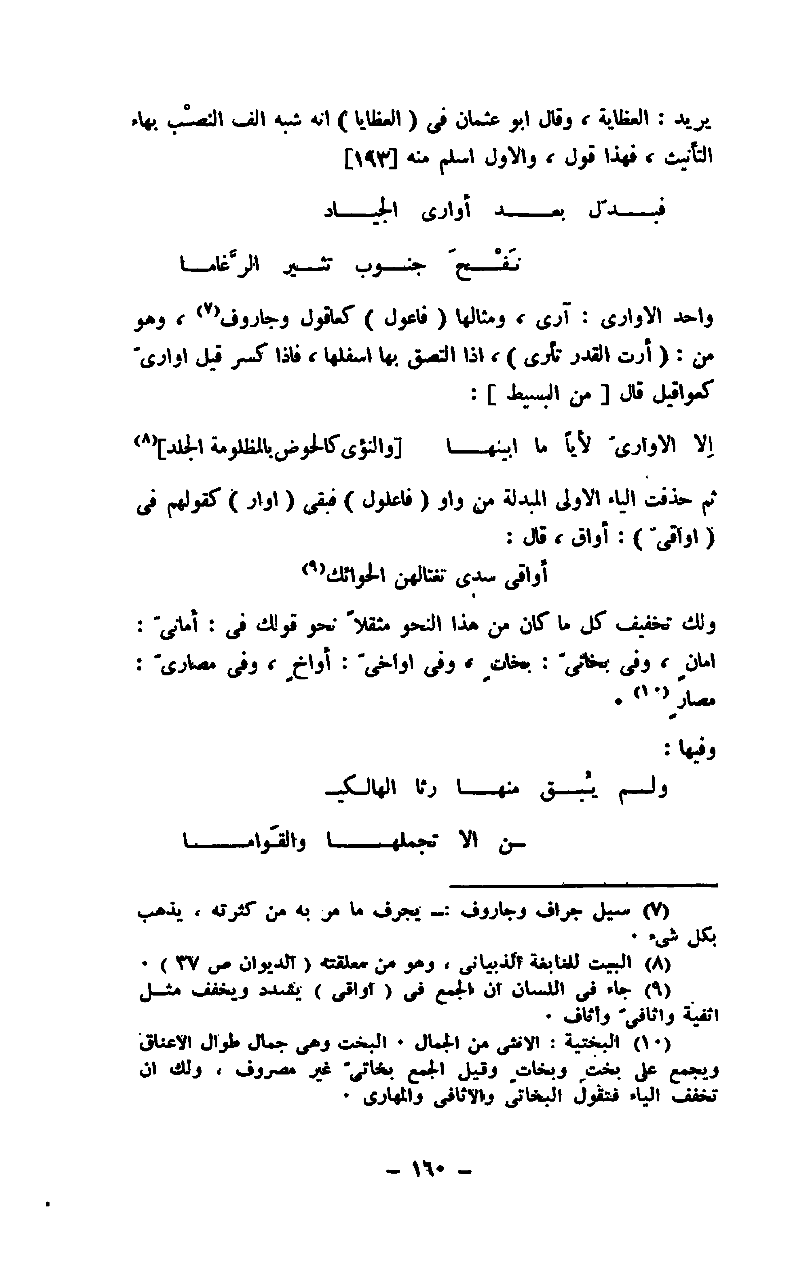 ولك تخفيف كل ما كان من هذا النحو مثقلا نحو قولك في: أمانيّ: امان، وفي بخاتيّ: بخاتٍ، وفي اواخيّ: أواخٍ، وفي مصاريّ: مصارٍ.