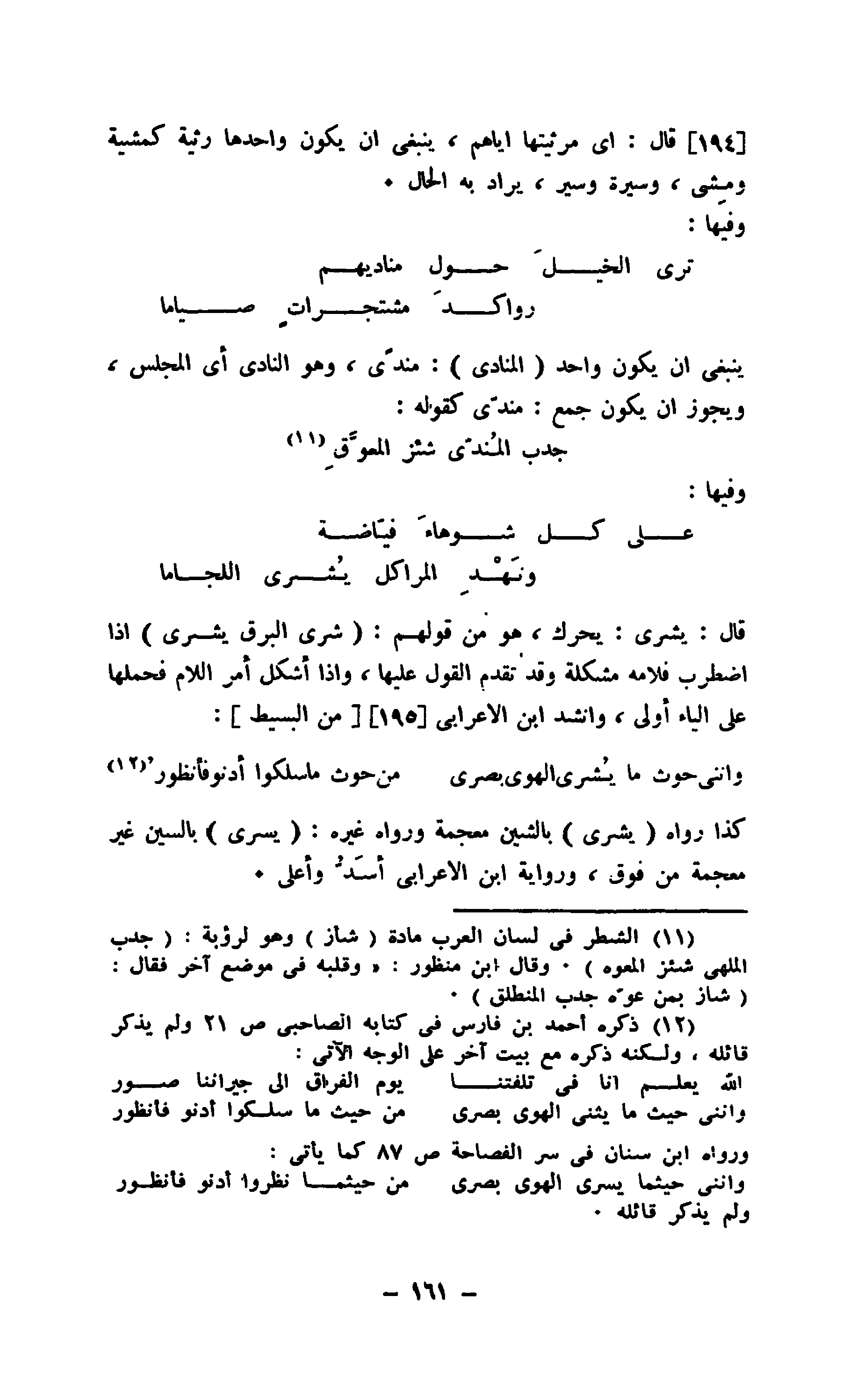 ينبغي أن يكون واحد " المنادي ": مندى، وهو النادي أي المجلس، ويجوز أن يكون جمع: مندّى كقوله:
