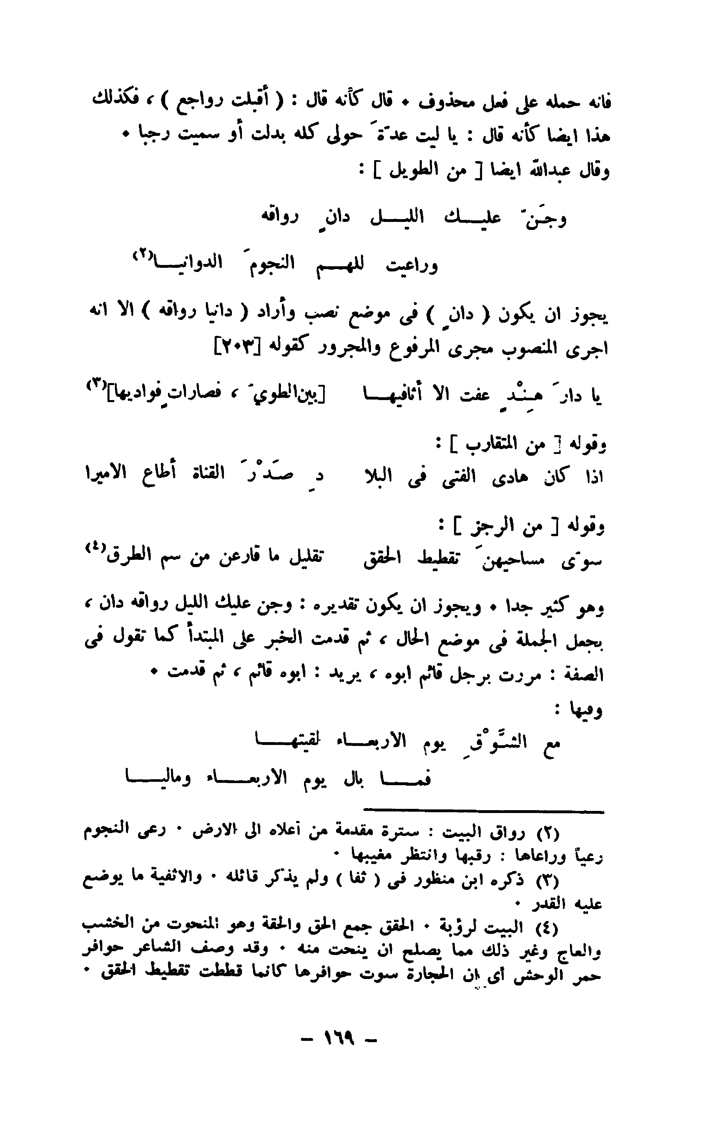 سوّى مساحيهن تقطيط الحقق تقليل ما قارعن من سم الطرق وهو كثير جدا. ويجوز أن يكون تقديره: وجن عليك الليل رواقة دان، يجعل الجملة في موضع الحال، ثم قدمت الخبر على المبتدأ كما تقول في الصفة: مررت برجل قائم أبوه، يريد: أبوه قائم، ثم قدمت.