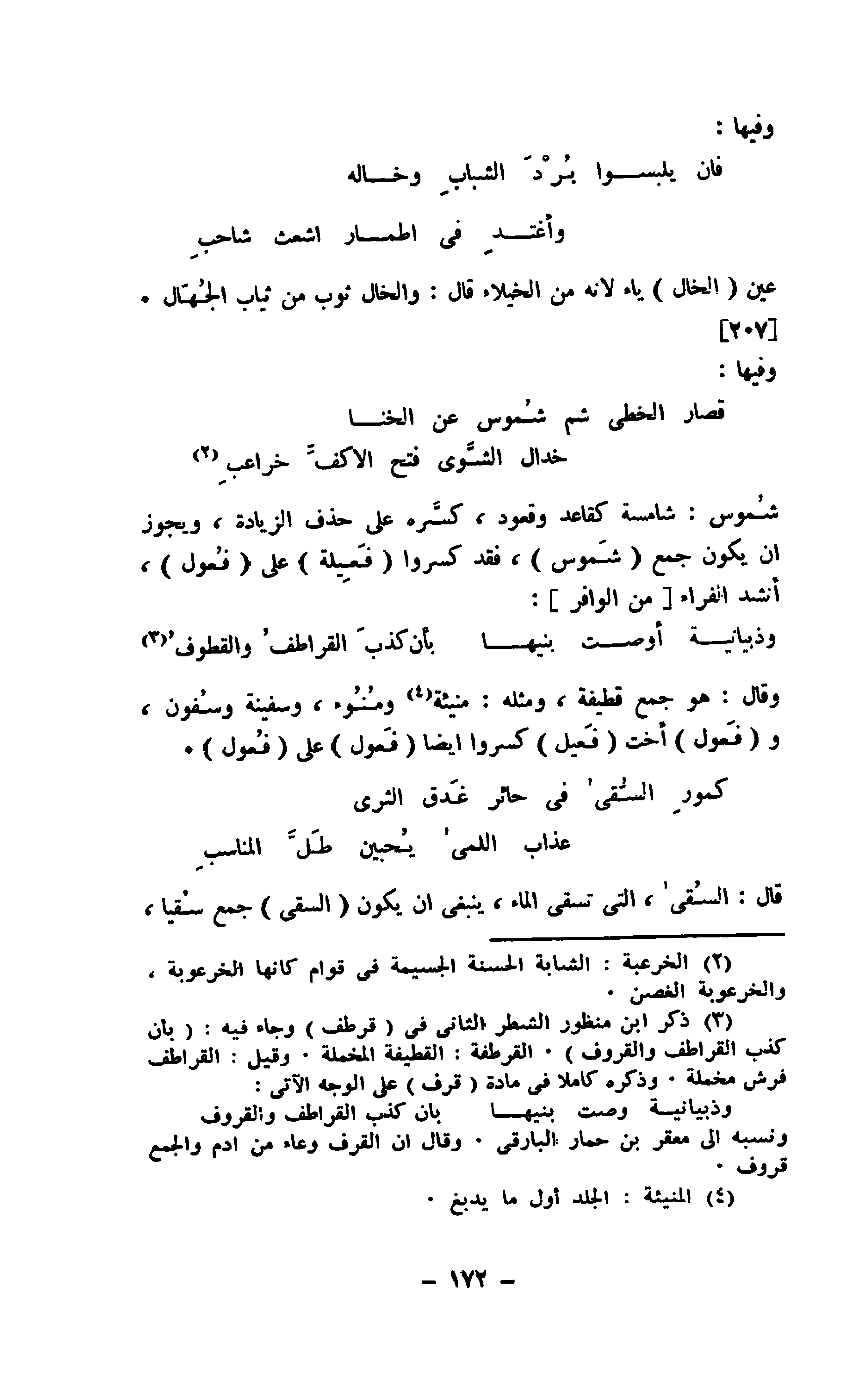 وقال: هو جمع قطيفة، ومثله: منيئة ومُنُوء، وسفينة وسفوف، و " فَعول " أخت " فَعيل " كسروا أيضا " فَعول " على " فُعول ".