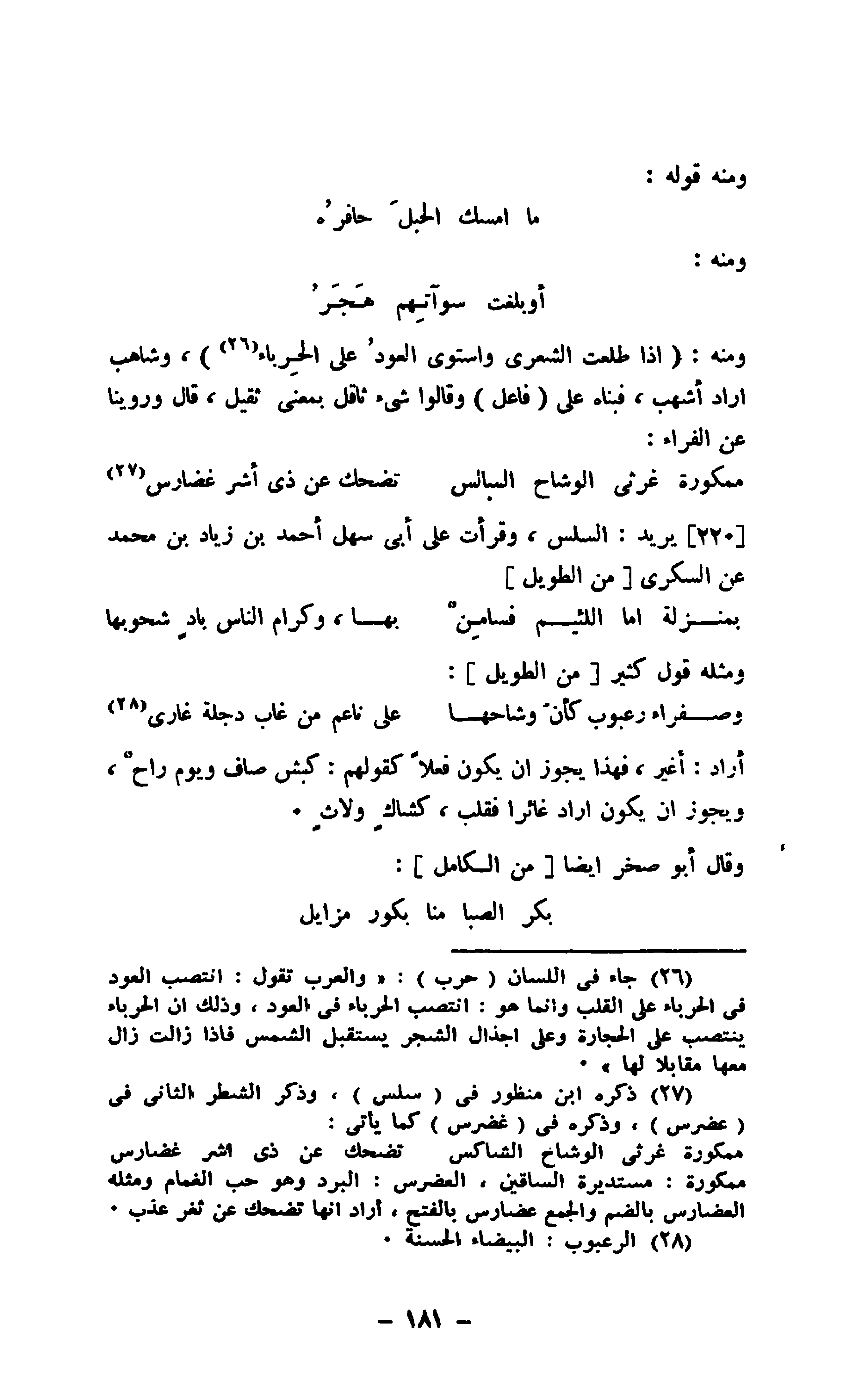 يريد: السلس، وقرأت على أبي سهل أحمد بن زياد بن محمد عن السكري " من الطويل "