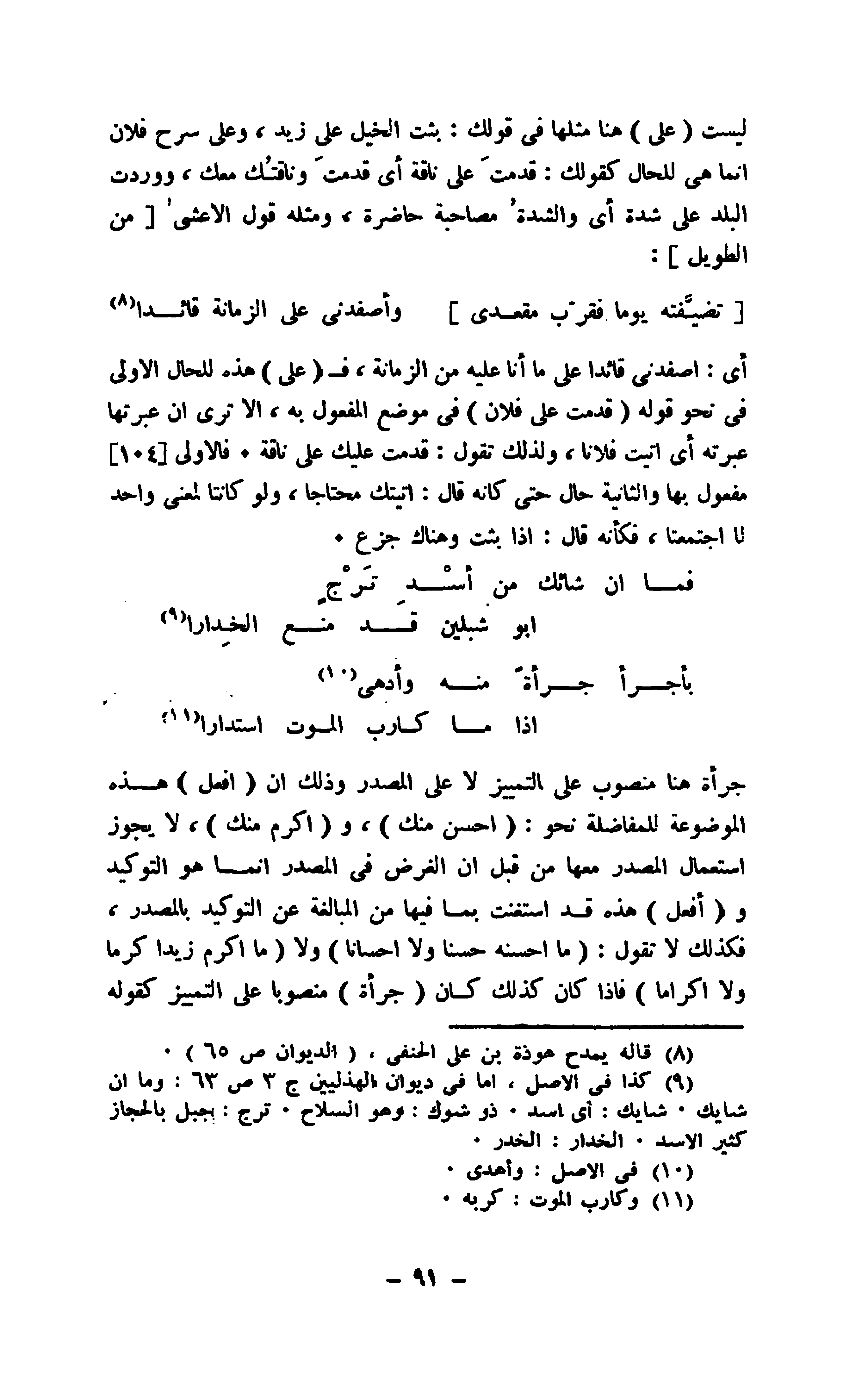أي: أصفدني قائدا على ما أنا عليه من الزمانة، ف " على " هذه للحال الأولى في نحو قوله " قدمت على فلان " في موضع المفعول به، ألا ترى أن عبرتها عبرته أي أتيت فلانا، ولذلك تقول: قدمت عليك على ناقة. فالأولى مفعول بها والثانية حال حتى كأنه قال: أتيتك محتاجا، ولو كانتا لمعنى واحد لا اجتمعتا، فكأنه قال: إذا بثت وهناك جزع.