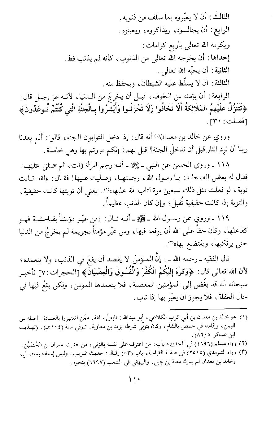 إِنَّ الْمُؤْمِنَ لَا يَقْصِدُ أَنْ يَقَعَ فِي الذَّنْبِ، وَلَا يَتَعَمَّدُهُ لِأَنَّ اللَّهَ تَعَالَى قَالَ: {وَكَرَّهَ إِلَيْكُمُ الْكُفْرَ وَالْفُسُوقَ وَالْعِصْيَانَ} [الحجرات: 7] ، فَأَخْبَرَ أَنَّهُ قَدْ بَغَّضَ إِلَى الْمُؤْمِنِينَ الْمَعْصِيَةَ، فَلَا يَتَعَمَّدُهَا الْمُؤْمِنُ وَلَكِنْ يَقَعُ فِيهَا حَالَةَ الْغَفْلَةِ فَلَا يَجُوزُ أَنْ يُعَيَّرَ بِهَا إِذَا تَابَ.