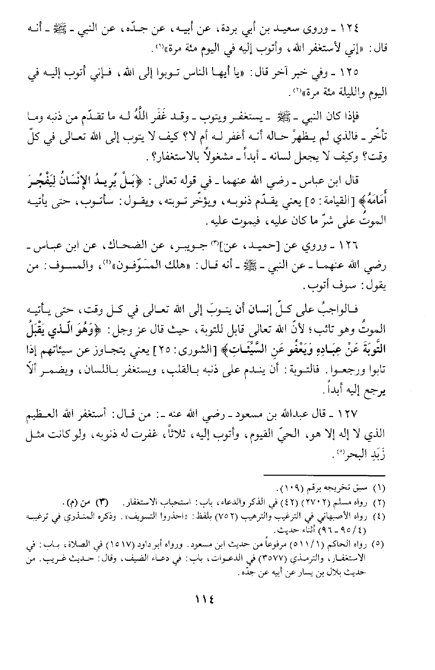 125 - وَفِي خَبَرٍ آخَرَ قَالَ: «يَا أَيُّهَا النَّاسُ تُوبُوا إِلَى اللَّهِ فَإِنِّي أَتُوبُ إِلَيْهِ فِي الْيَوْمِ وَاللَّيْلَةِ مِائَةَ مَرَّةٍ» .