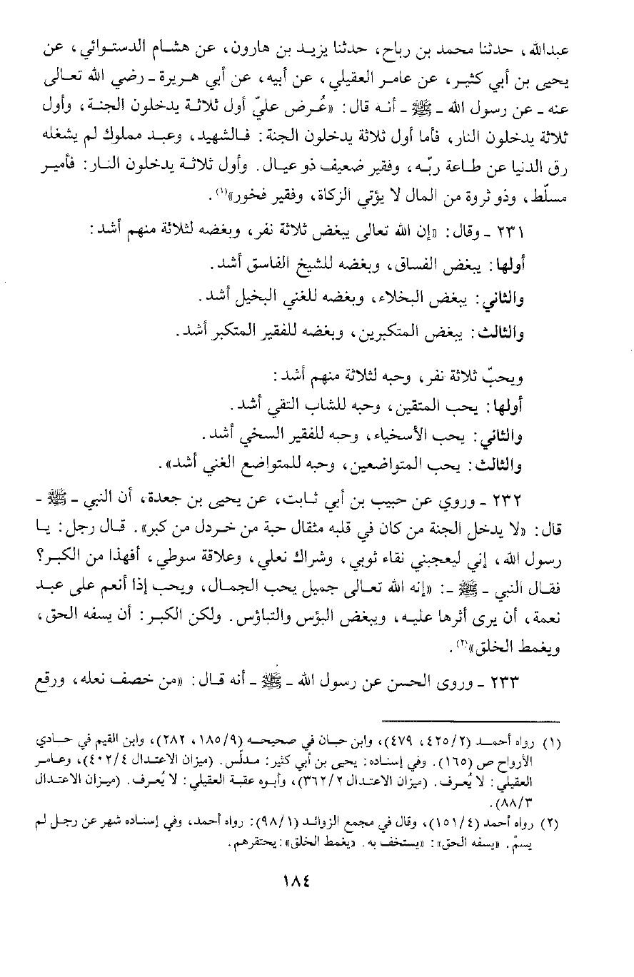 231 - وَقَالَ: " إِنَّ اللَّهَ تَعَالَى يُبْغِضُ ثَلَاثَةَ نَفَرٍ وَبُغْضُهُ لِثَلَاثَةٍ مِنْهُمْ أَشَدُّ.