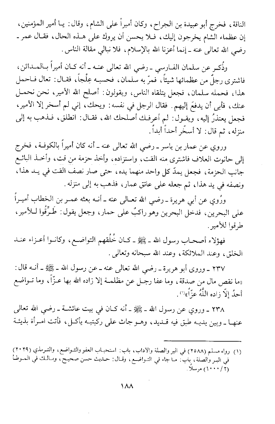 237 - وَرَوَى أَبُو هُرَيْرَةَ رَضِيَ اللَّهُ تَعَالَى عَنْهُ , عَنْ رَسُولِ اللَّهِ صَلَّى اللَّهُ عَلَيْهِ وَسَلَّمَ , وأَنَّهُ قَالَ: «مَا نَقَصَ مَالٌ مِنْ صَدَقَةٍ، وَمَا عَفَا رَجُلٌ عَنْ مَظْلَمَةٍ إِلَّا زَادَهُ اللَّهُ تَعَالَى عِزًّا» .