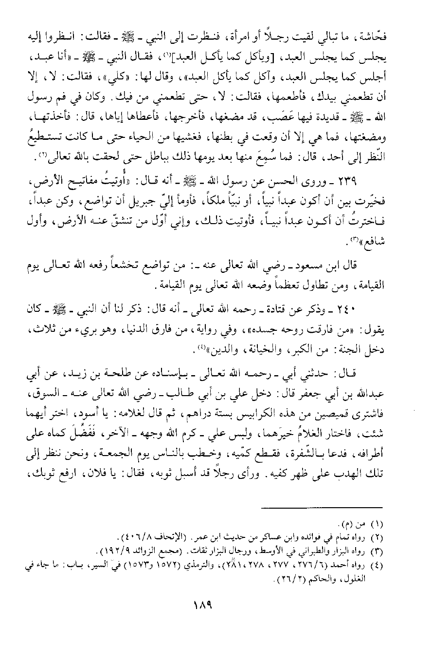 239 - وَرَوَى الْحَسَنُ , عَنْ رَسُولِ اللَّهِ صَلَّى اللَّهُ عَلَيْهِ وَسَلَّمَ , أَنَّهُ قَالَ: «أُوتِيتُ مَفَاتِيحَ الْأَرْضِ، فَخُيِّرْتُ بَيْنَ أَنْ أَكُونَ عَبْدًا نَبِيًّا أَوْ نَبِيًّا مَلَكًا، فَأَوْمَأَ إِلَيَّ جِبْرِيلُ أَنْ تَوَاضَعْ وَكُنْ عَبْدًا، فَاخْتَرْتُ أَنْ أَكُونَ عَبْدًا نَبِيًّا، فَأُوتِيتُ ذَلِكَ وَإِنِّي أَوَّلُ مَنْ تَنْشَقُّ عَنْهُ الْأَرْضُ، وَأَوَّلُ شَافِعٍ» .