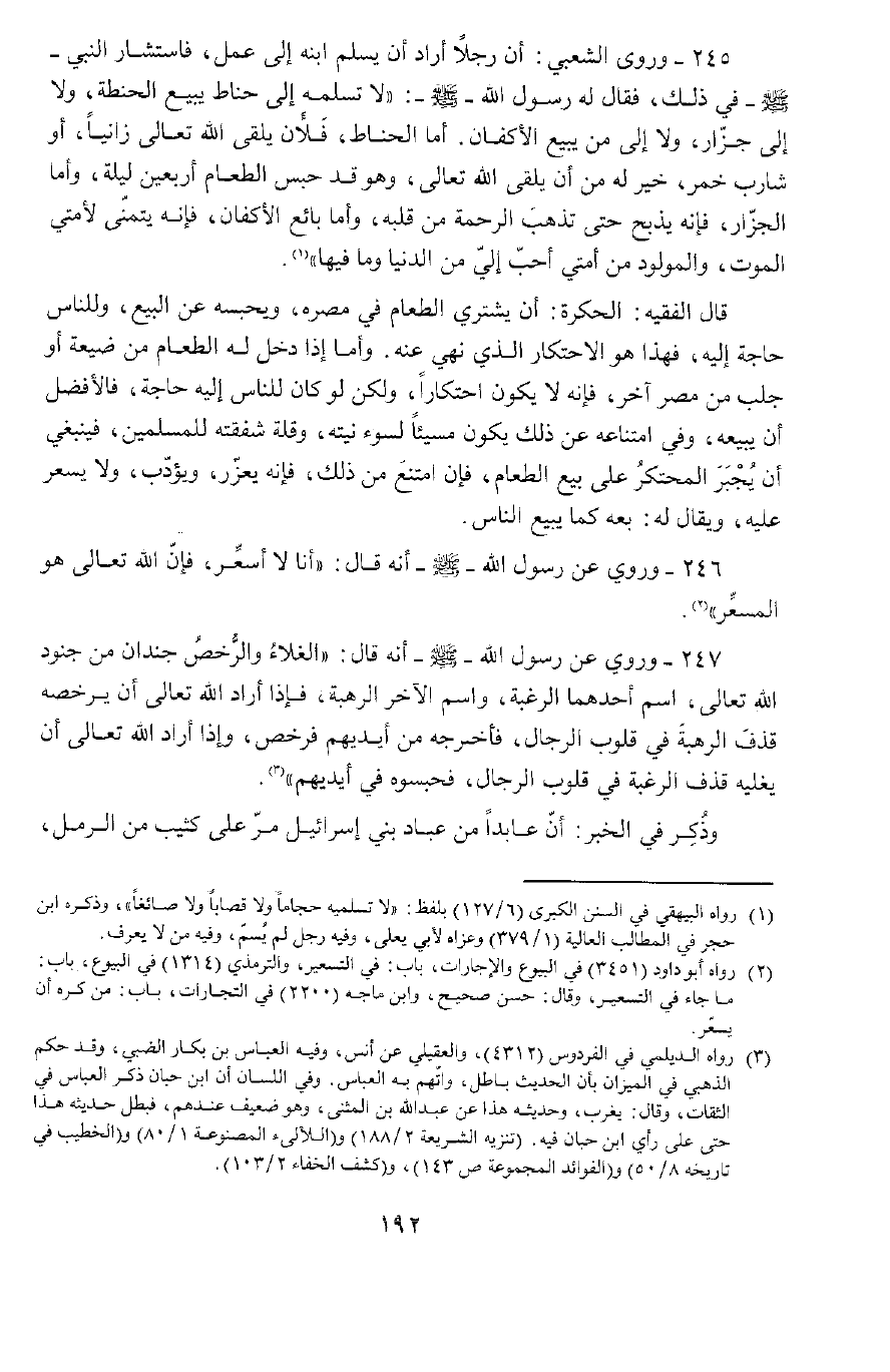 246 - وَرُوِيَ عَنْ رَسُولِ اللَّهِ صَلَّى اللَّهِ عَلَيْهِ وَسَلَّمَ أَنَّهُ قَالَ: «أَنَا لَا أُسعِّرُ فَإِنَّ اللَّهَ تَعَالَى هُوَ الْمُسَعِّرُ» .